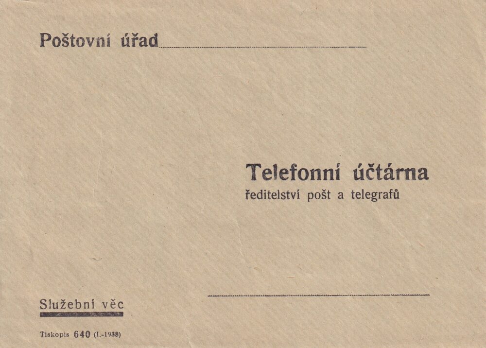 Obálka Telefonní účtárna ředitelství pošt a telegrafů