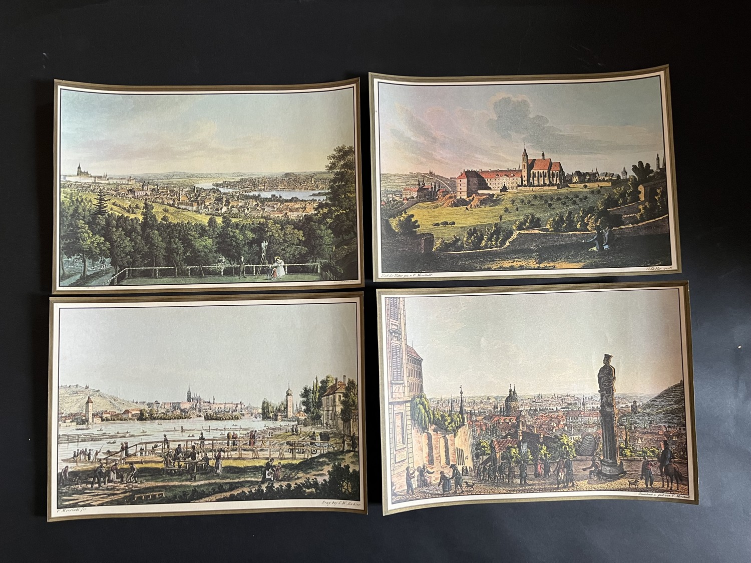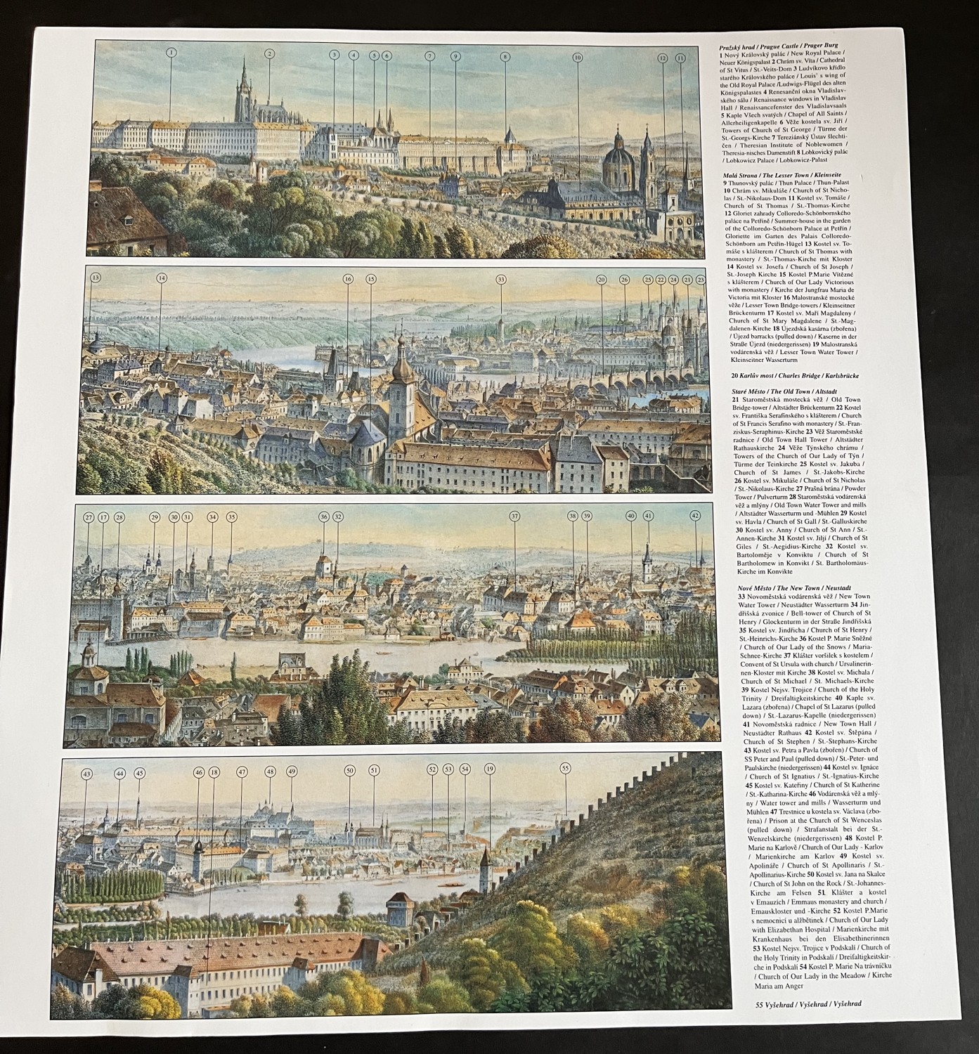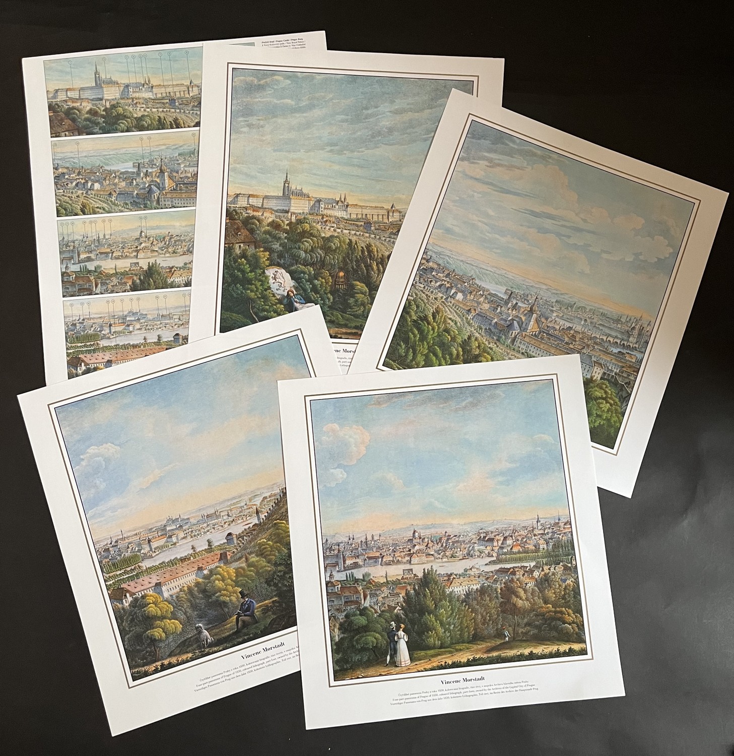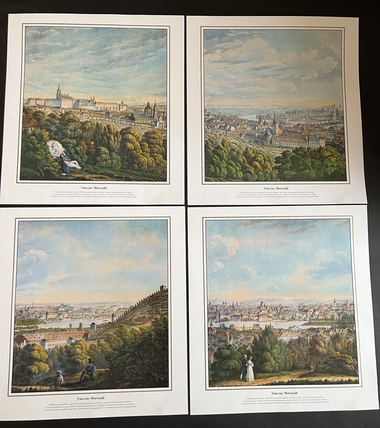 12 (ggv) 29 x 41 cm, Panorama Prahy z roku 1830 ve čtyřech dílech s popisem 46 x 42 cm