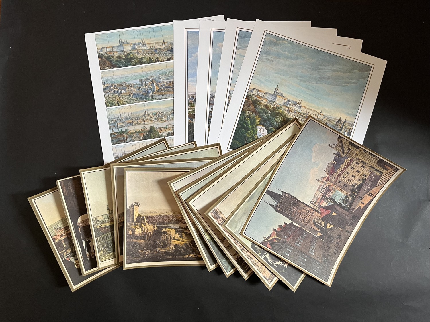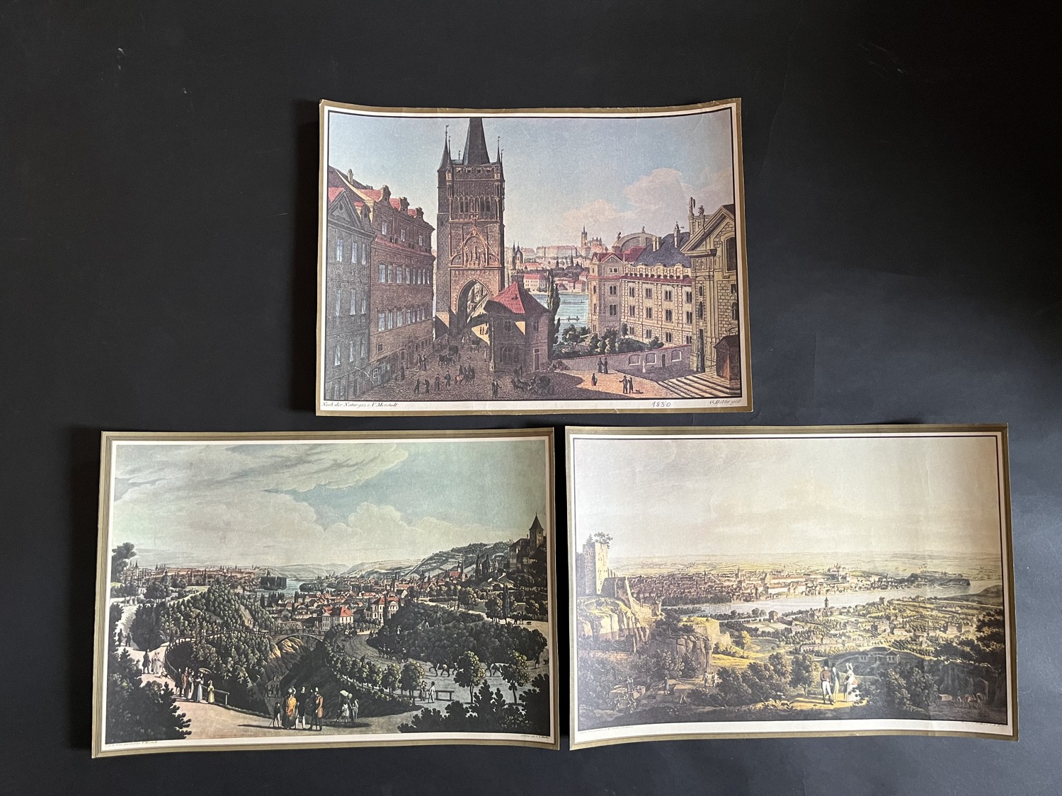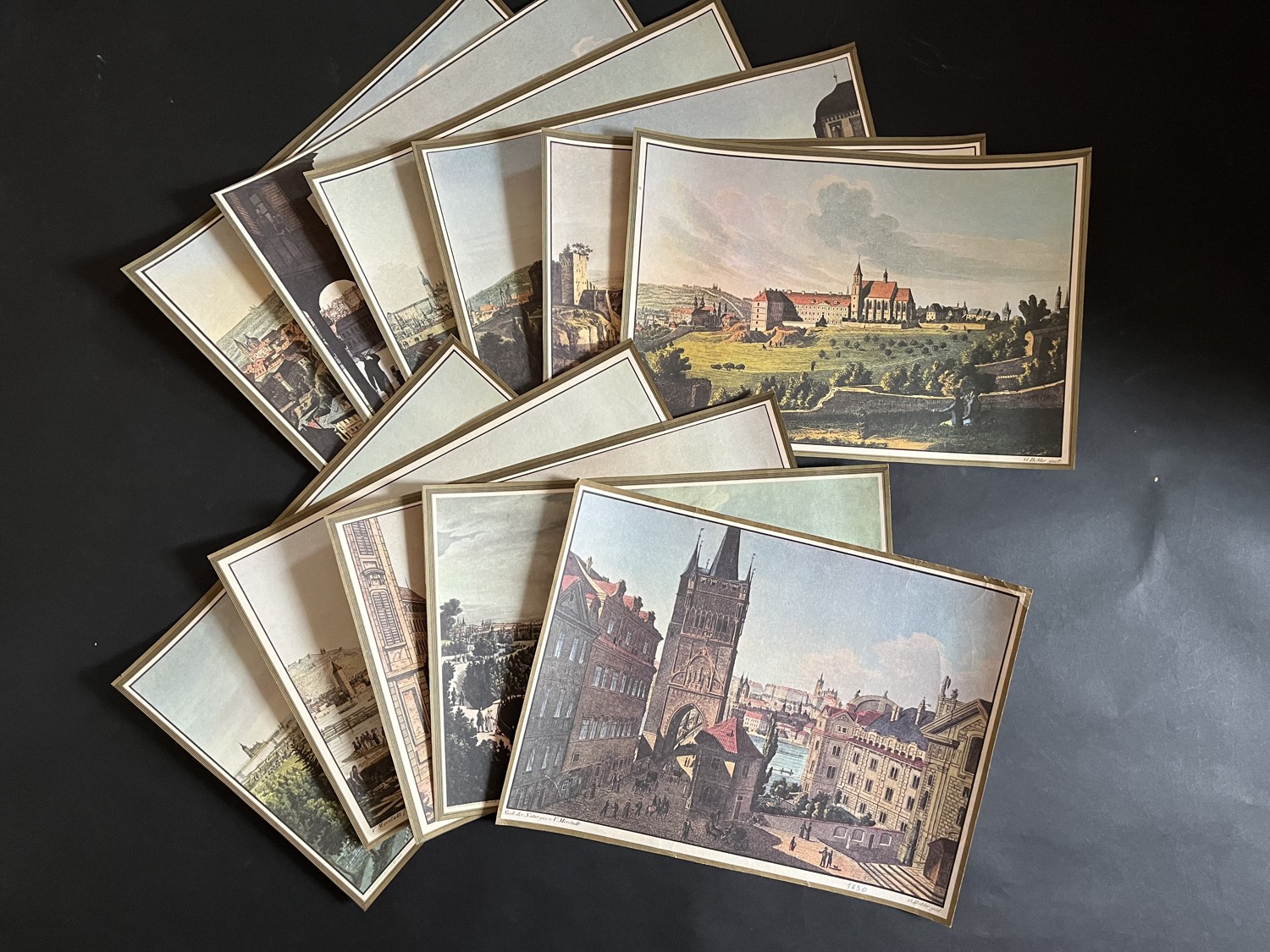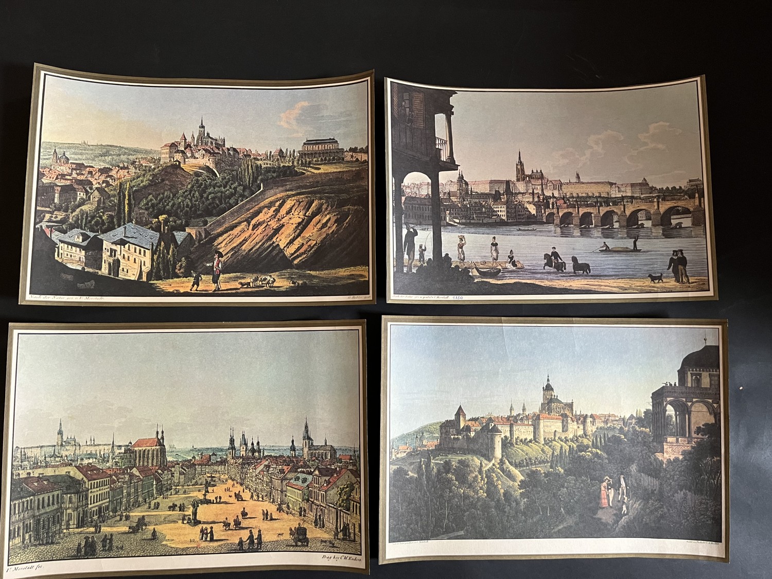 12 (ggv) 29 x 41 cm, Panorama Prahy z roku 1830 ve čtyřech dílech s popisem 46 x 42 cm