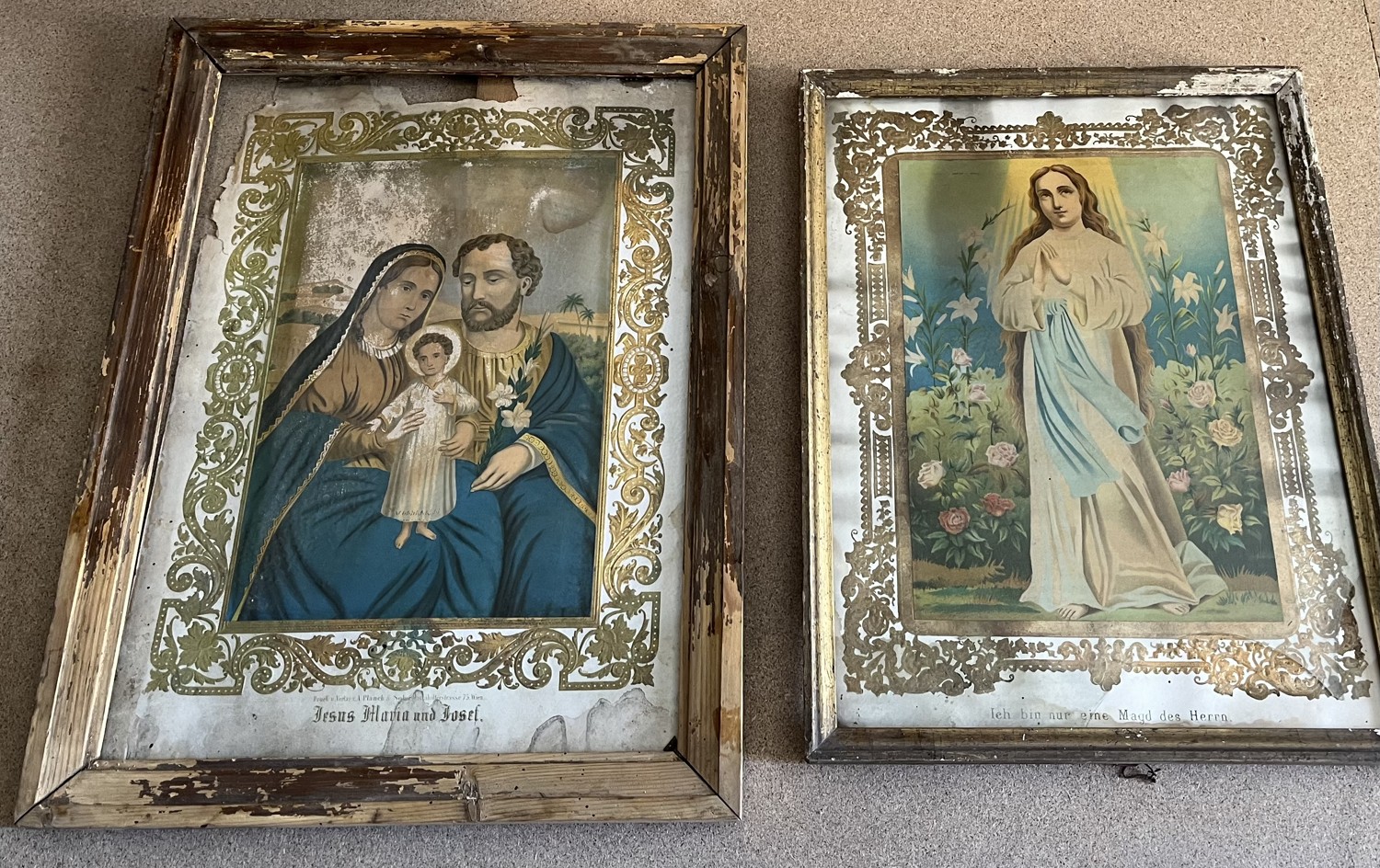 3 (ggz) Celkový rozměr obrazů 38 x 50 cm, 57,5 x 42,5 cm. Horší stav, 1 x sklo prasklé