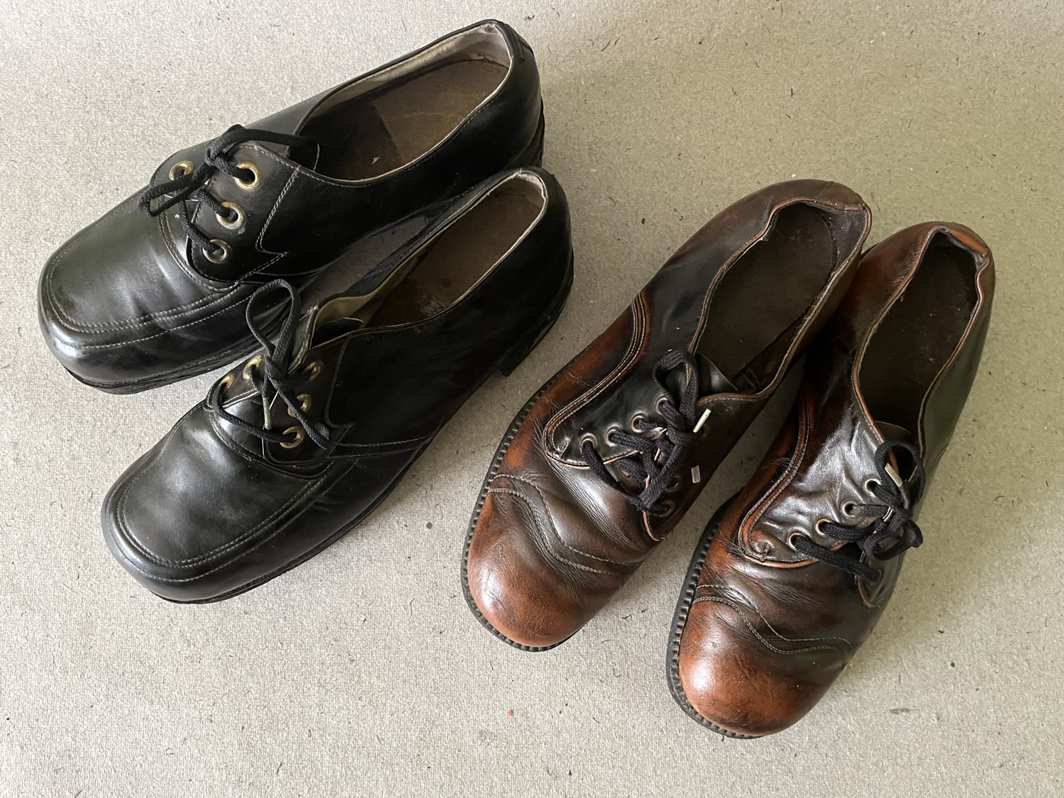 27 (t3) Lze koupit jednotlivě. Černé boty cca 28 cm vnitřní velikost stélky, v zachovalém stavu. Hnědé – cca 28 cm vnitřní velikost stélky, v zachovalém stavu. Boty vhodné k divadlu, na veteránské akce, dobové akce ap. Období 50-80.léta. Máme i další páry, pokud by někdo hledal něco specifického nebo konkrétní velikost.