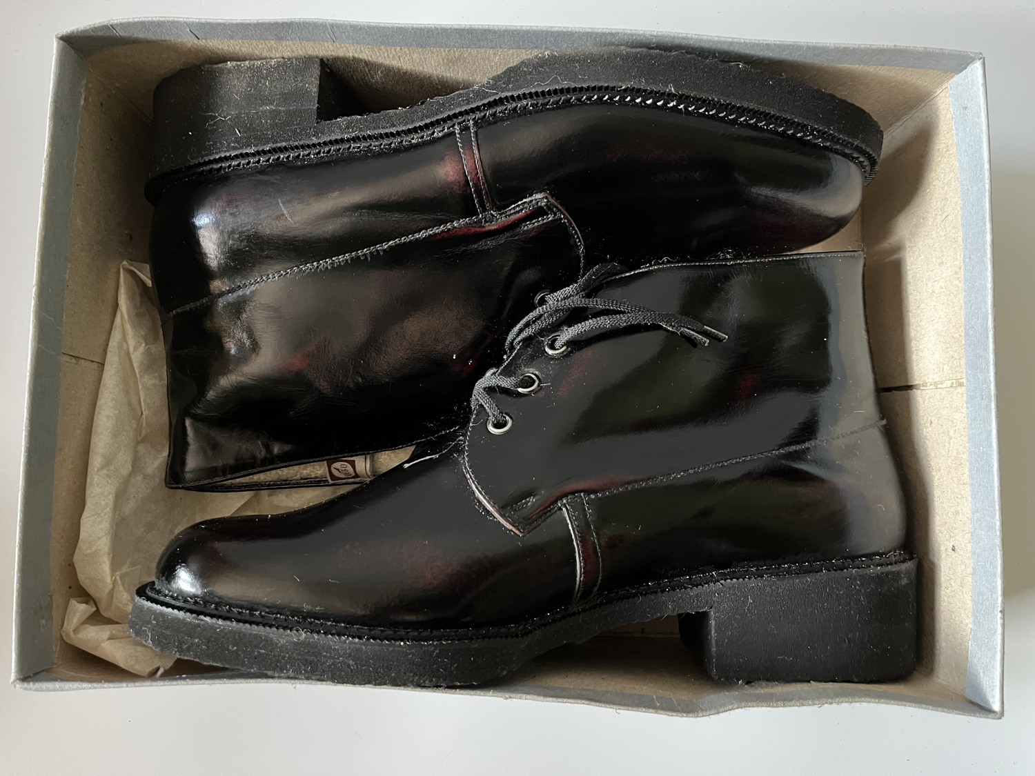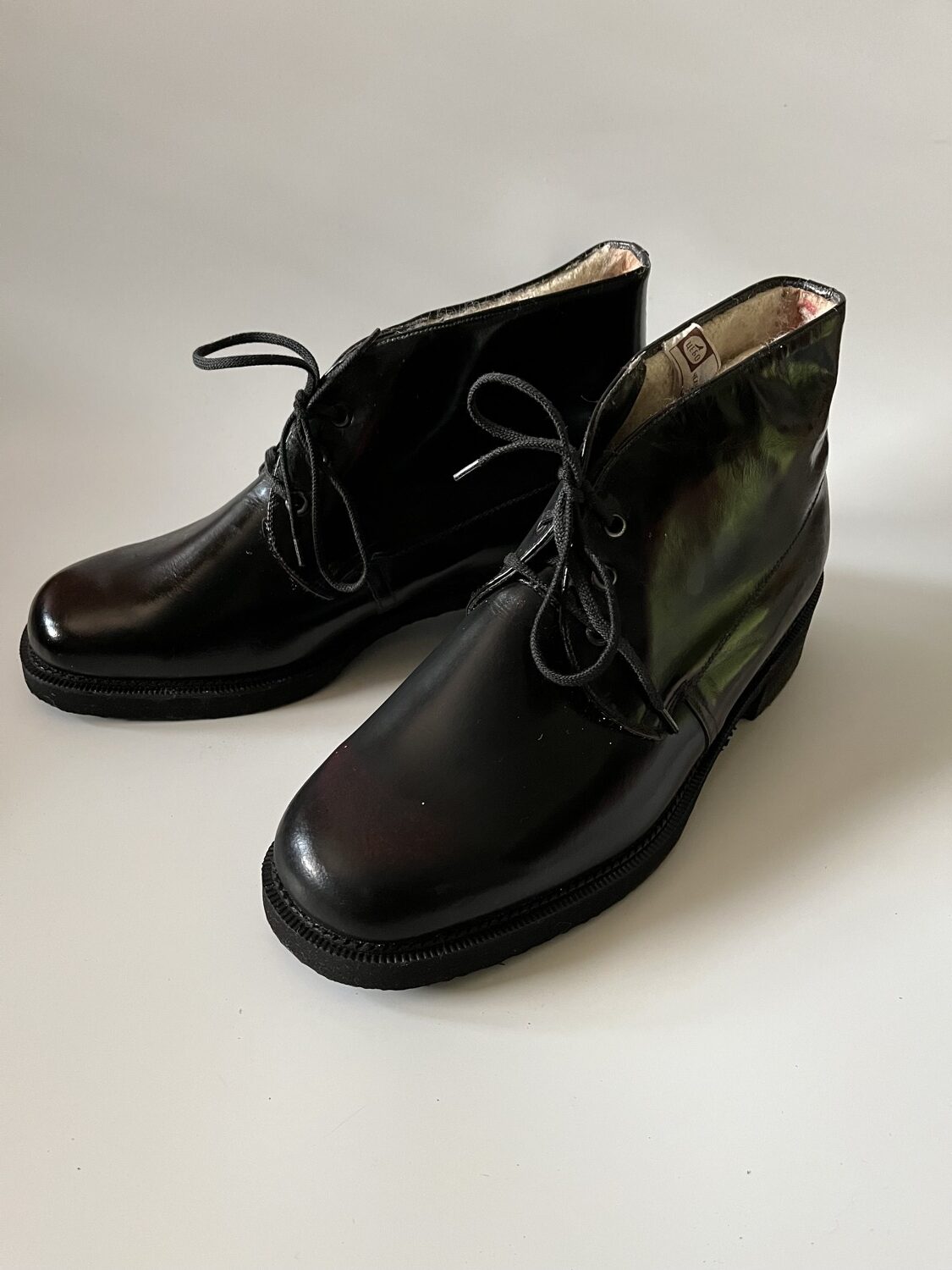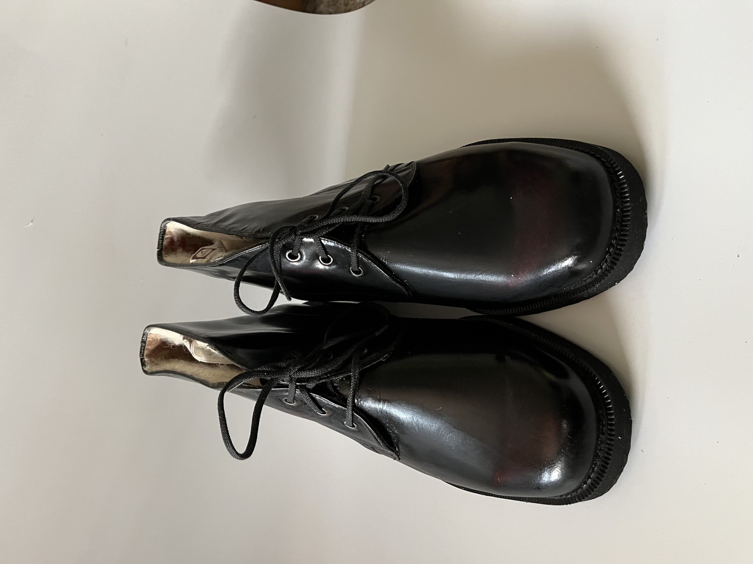 6 (t3) Boty byly nenošené, cca 28 cm vnitřní velikost stélky. Boty vhodné k divadlu, na veteránské akce, dobové akce ap. Období 50-80.léta. Máme i další páry, pokud by někdo hledal něco specifického nebo konkrétní velikost.