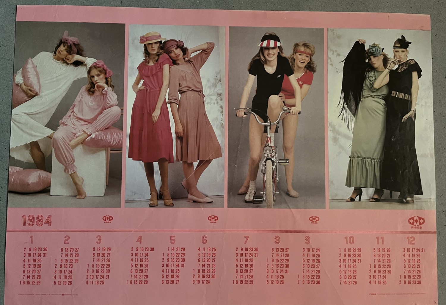 17 (hhh) 1 ks 60 x 84 cm Plakát – kalendář 1990 Modeta, MTZ 31 Gottwaldov. 2 ks 59,5 x 84 cm Tylex St. P. Letovice nositel vyznamenání za vynikající práci Plakát – kalendář 1989 foto Z. Virt, X. Virtová, tisk Svoboda Praha, Typo Z. Zářecký. 1 ks 65,5 x 96,5 cm Pletařský průmysl / Generální ředitelství Písek, Pánské prádlo n.p. Pleas. V pleteném denně. Foto Vlad.Čech, grafika J. Sýkora. 1 ks 84,5 x 59,5 cm Plakát – kalendář r.1984 Pleas, pletařské závody, n.p. nositel řádu Práce, Havlíčkův Brod, Blanka Chocholová. 2 ks 85 x 60 cm Plakát – kalendář r.1986 Pleas, pletařské závody, n.p. nositel řádu Práce, Havlíčkův Brod, Blanka Chocholová.