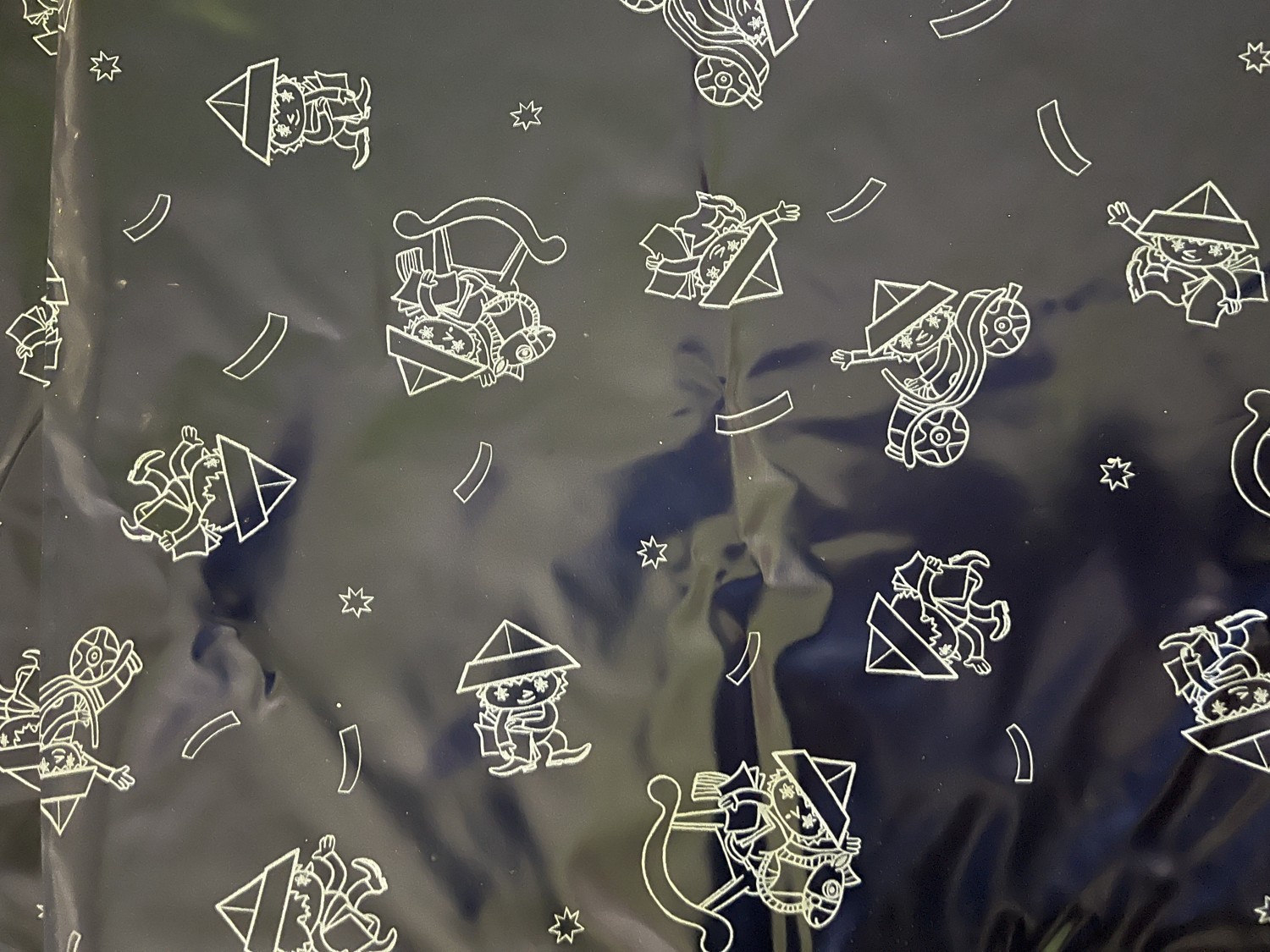 42 (t1) Rozměr: 114 x 135 cm. Večerníček na houpacím koníkovi, v autíčku a jiné.