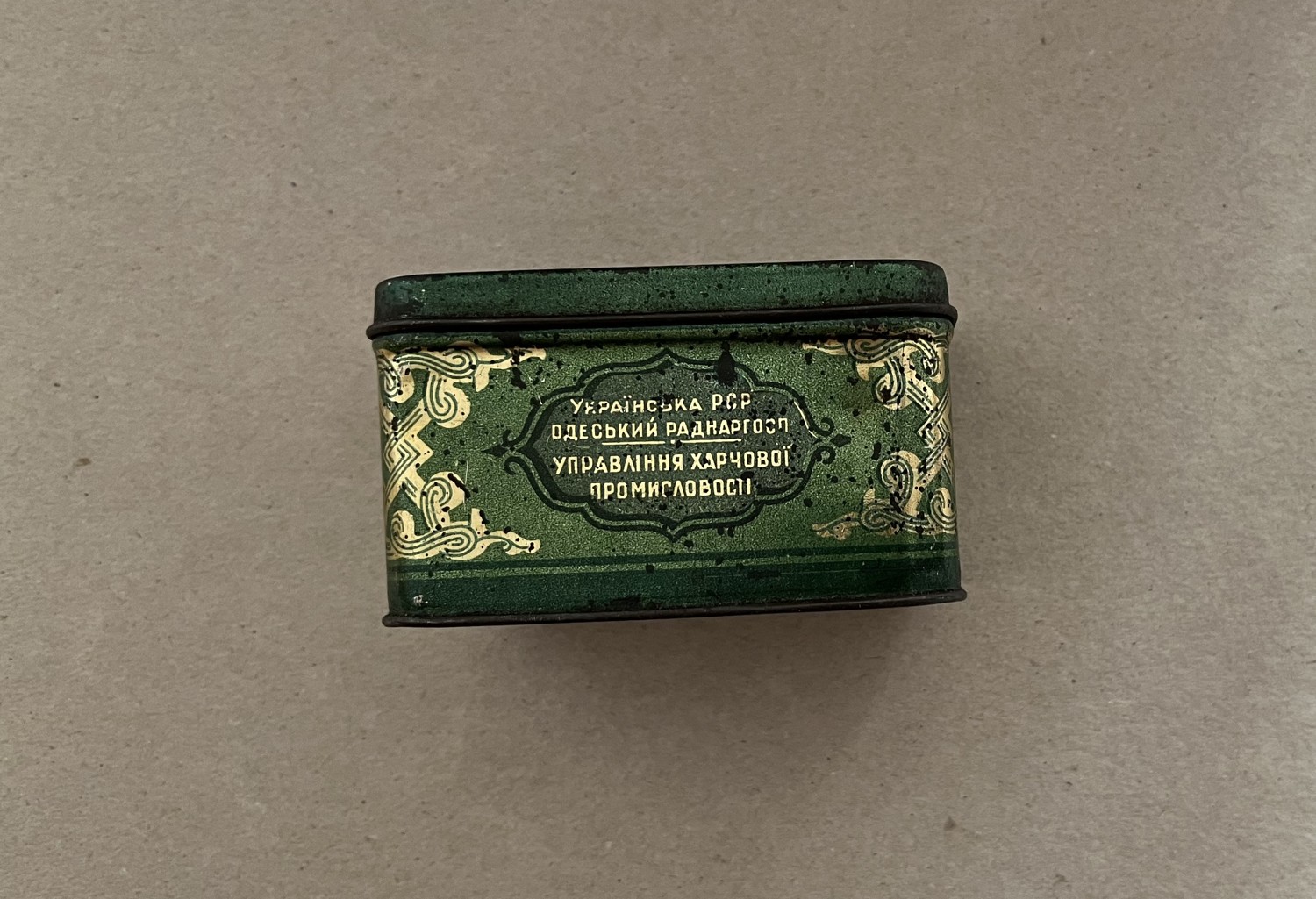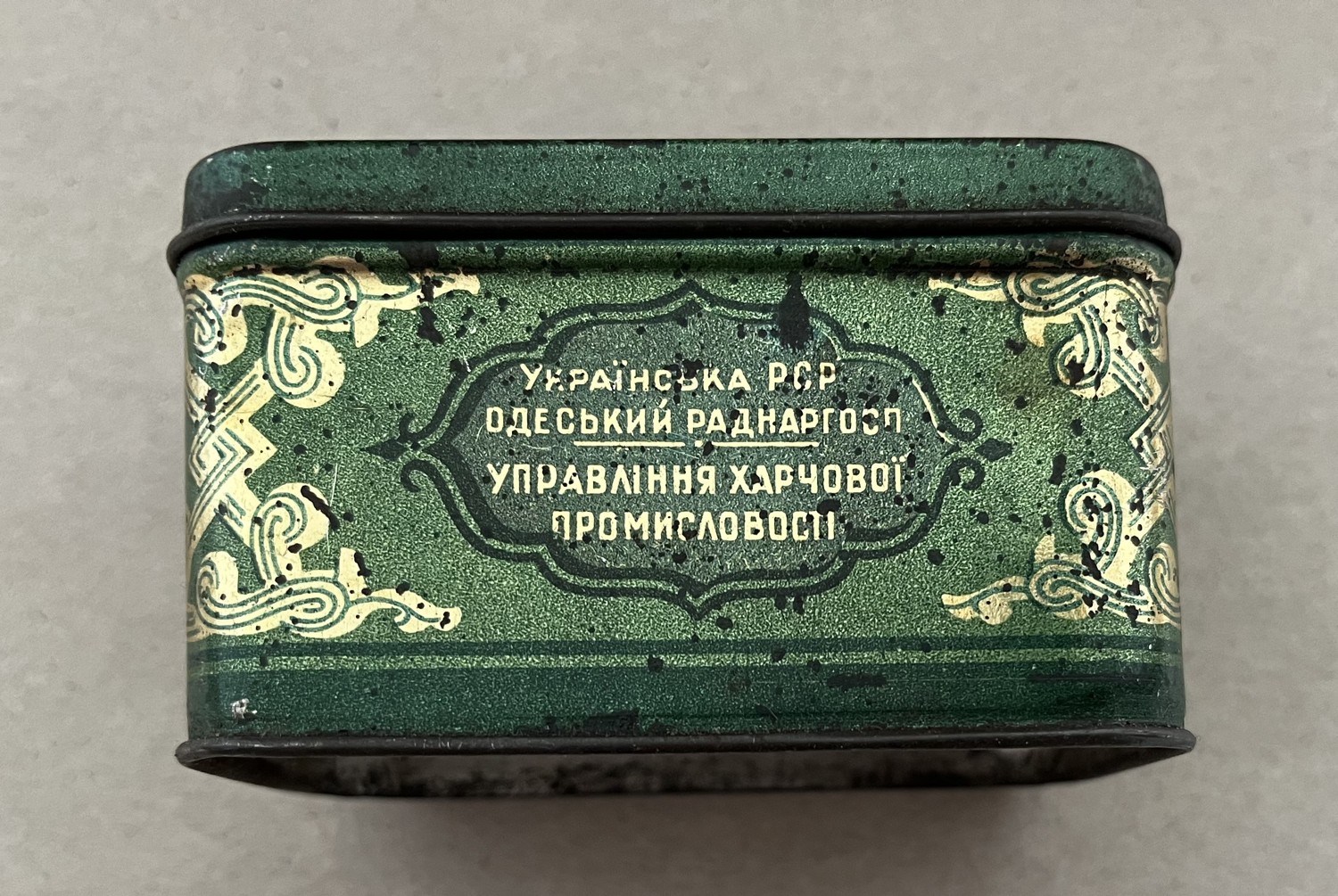 Plechová krabička od čaje, Oděsa 1.pol.20.stol.
