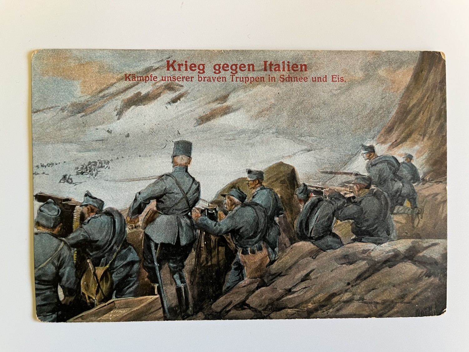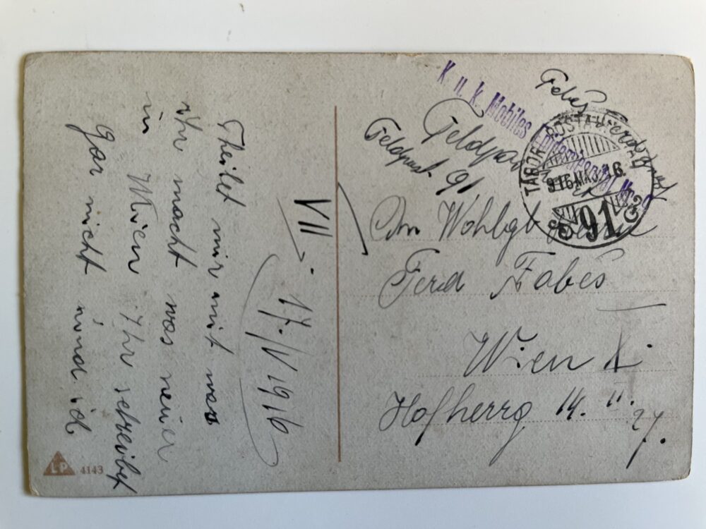 (hhl 52) MF prošlá, 1916. Razítko. Kulomet, vojáci, výstroj, výzbroj.