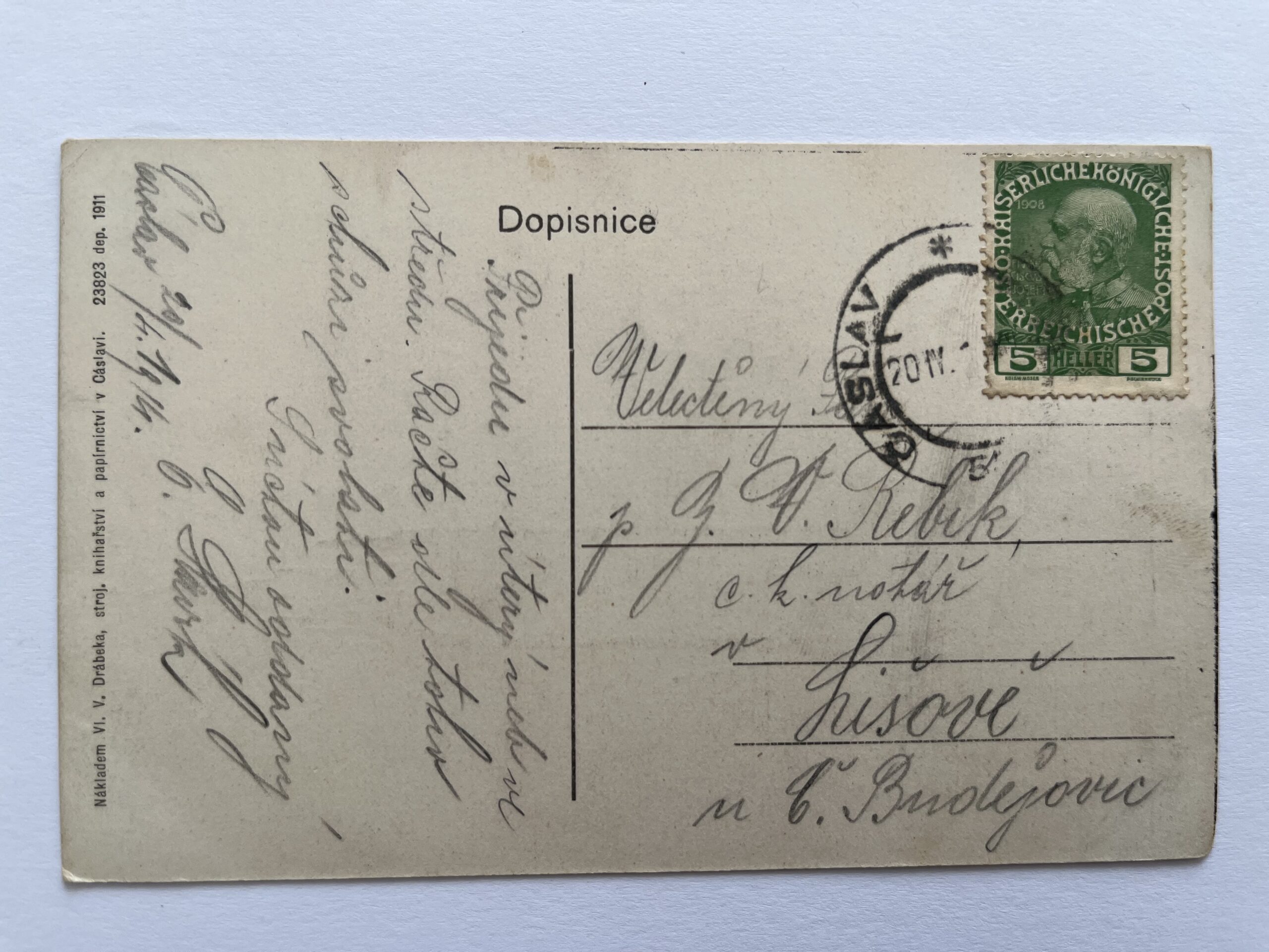 (Kutná Hora-19) Pohlednice malý formát, prošlá poštou, 1914.