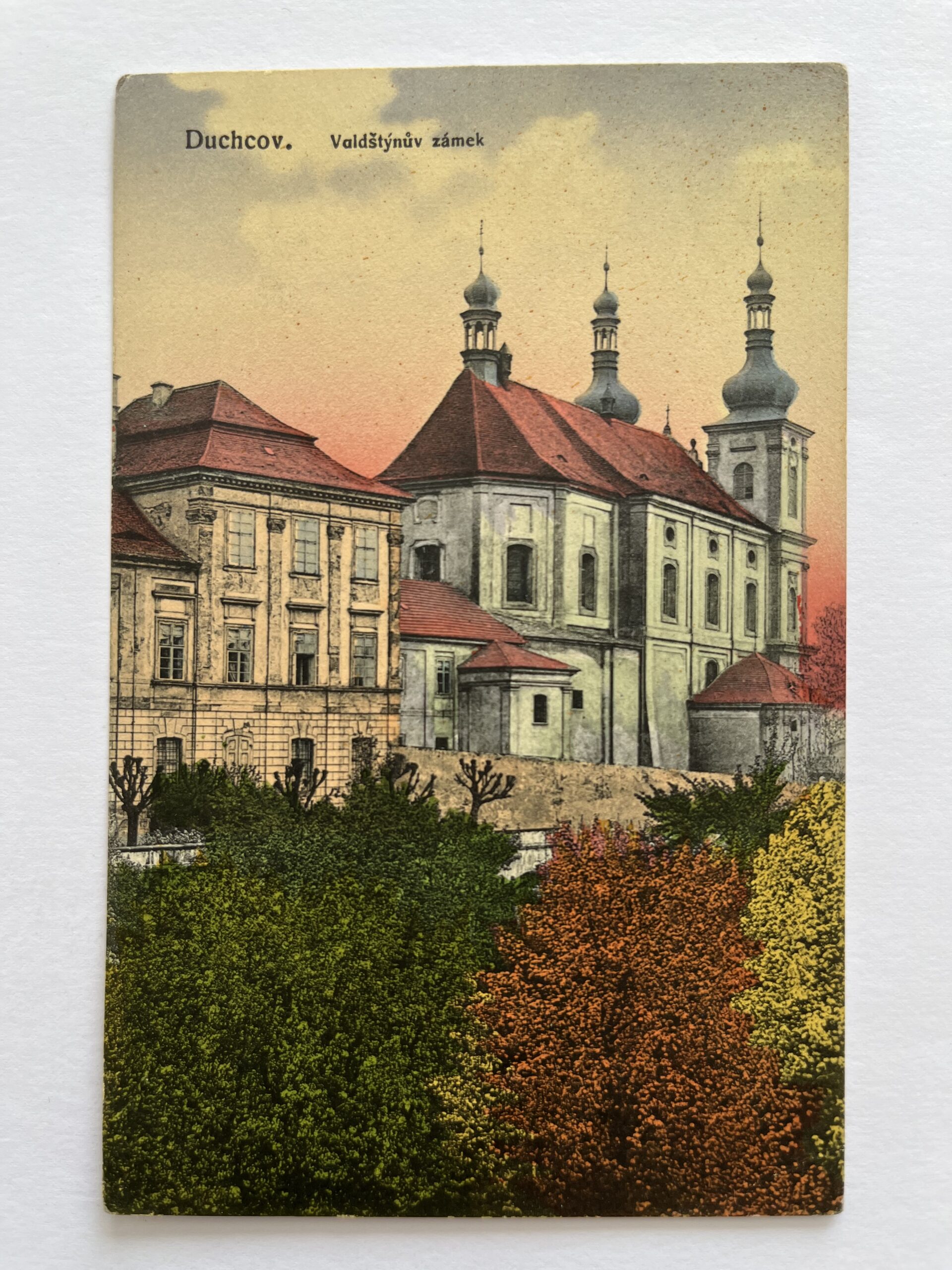 Pohlednice Duchcov – Valdštýnův zámek, okres Teplice 1918