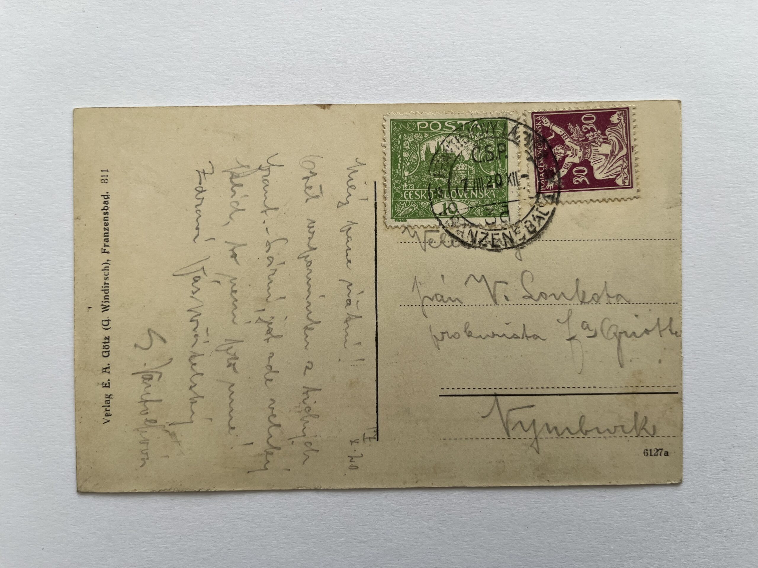 (Cheb 3) Pohlednice malý formát, prošlá poštou, 1920.