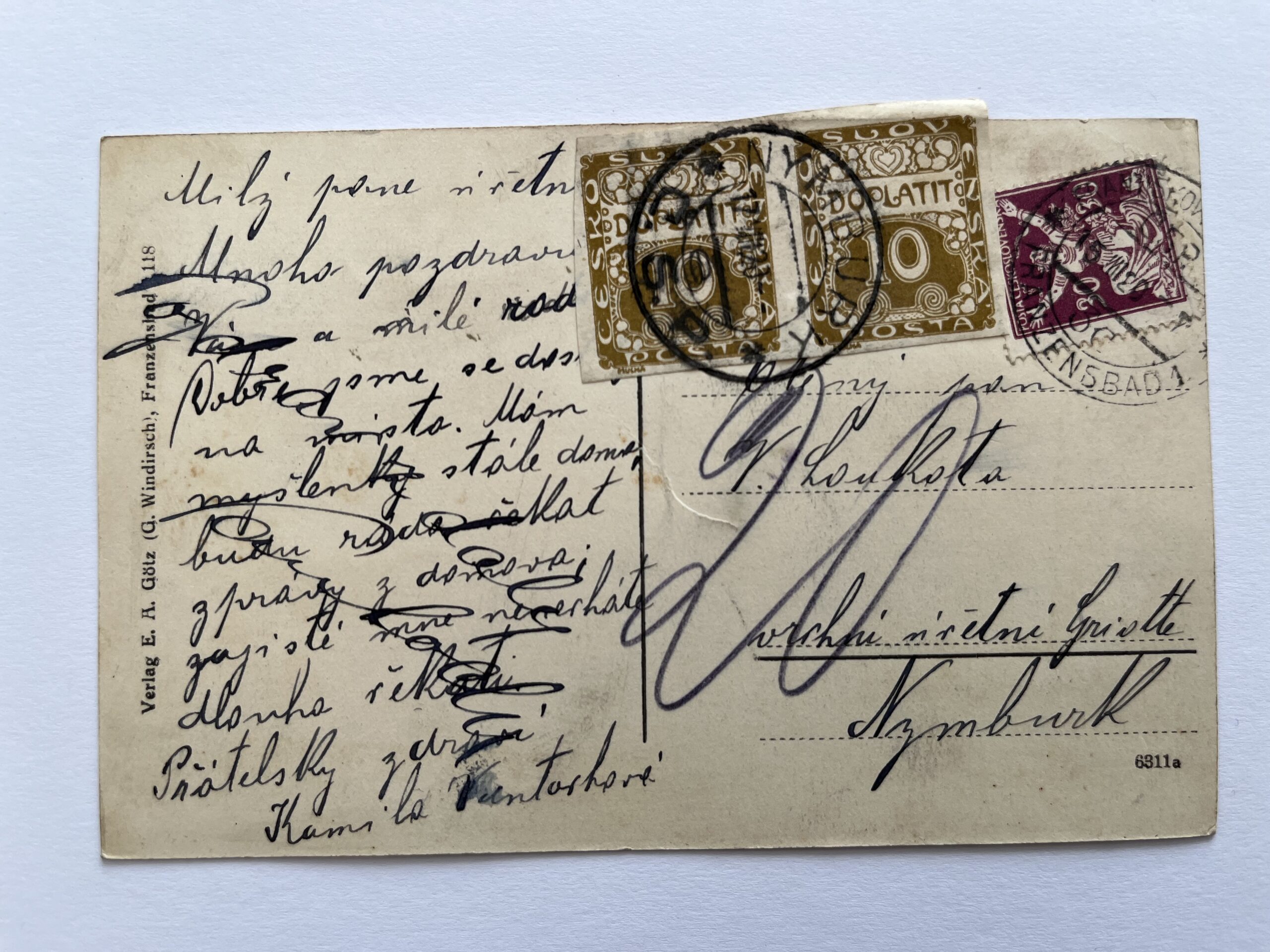 (Cheb 3) Pohlednice malý formát, prošlá poštou, 1920. Uhličitá plynová lázeň s přírodním radiovým emanatorium a novou kolonádou.