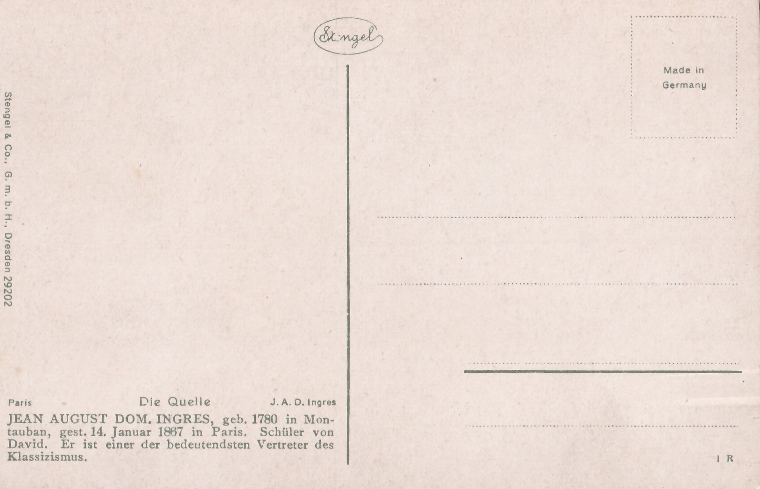 (OB-99) Rozměr: 9×14 cm; zezadu uveden umělec a informace o něm + název díla, v německém jazyce;