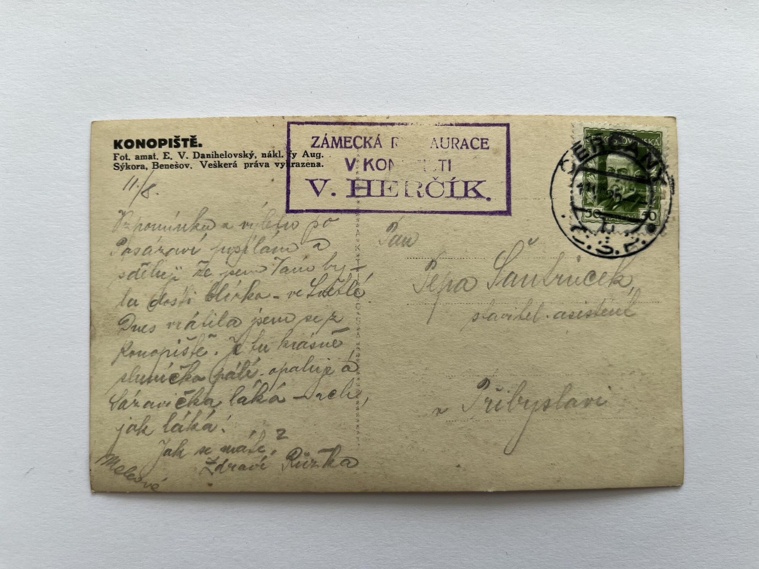 Pohlednice Konopiště, razítko Zámecká restaurace, okres Benešov - Obrázek 2