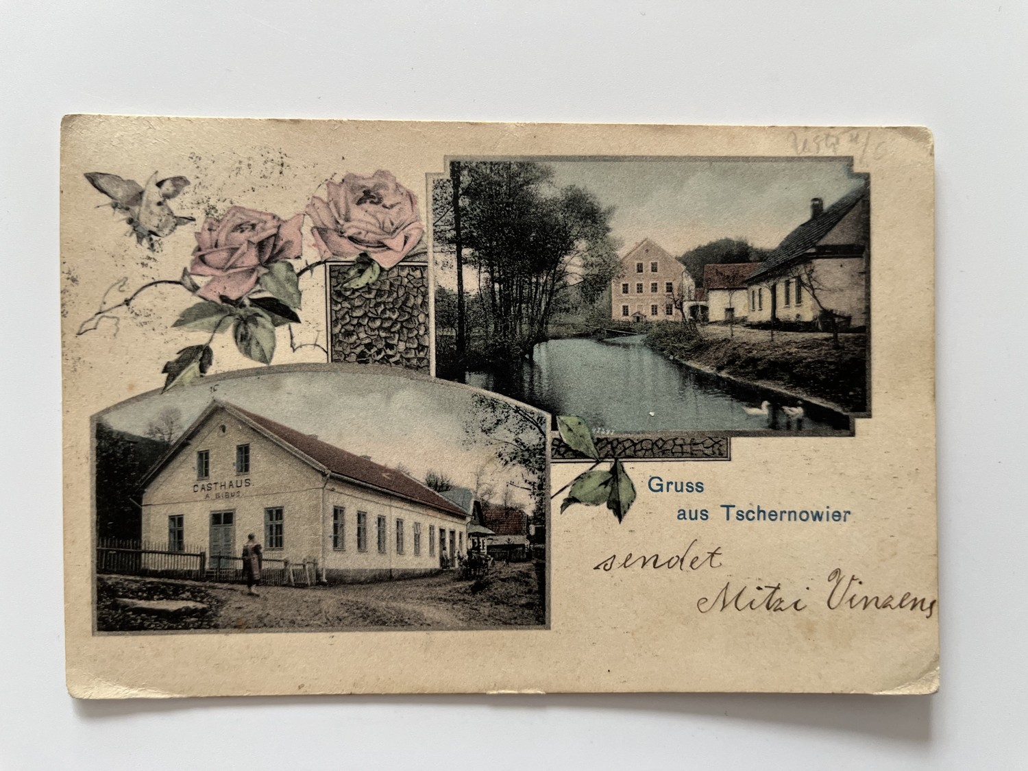 (Ústí nad Orlicí-72) Pohlednice malý formát, prošlá poštou, r.1909. Černovír koláž – Hostinec. Starý mlýn.