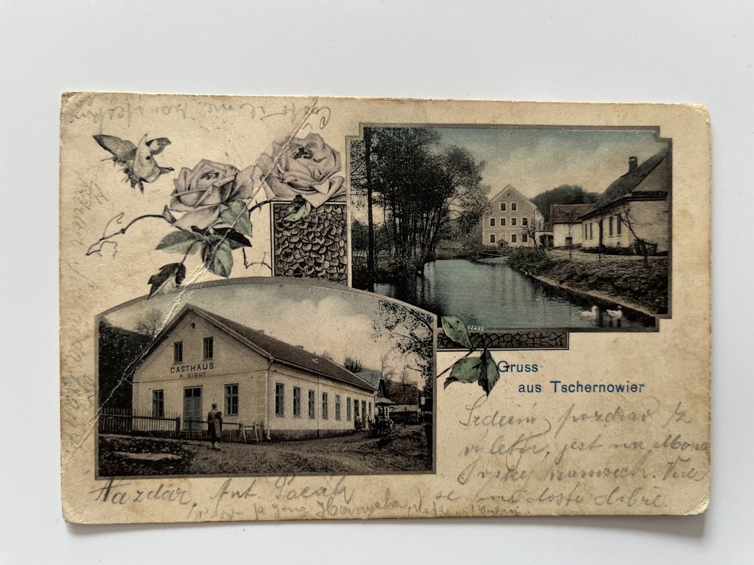 (Ústí nad Orlicí-72) Pohlednice malý formát, prošlá poštou, r.1906. Černovír koláž – Hostinec. Starý mlýn.