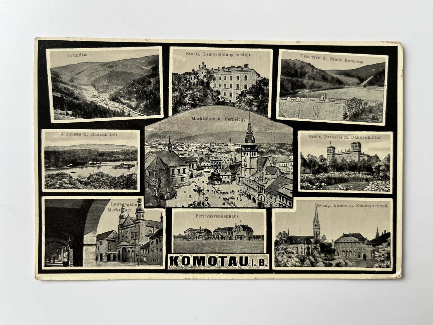 Pohlednice místopis Chomutov koláž nemocnice, kostel okres Chomutov - Obrázek 2