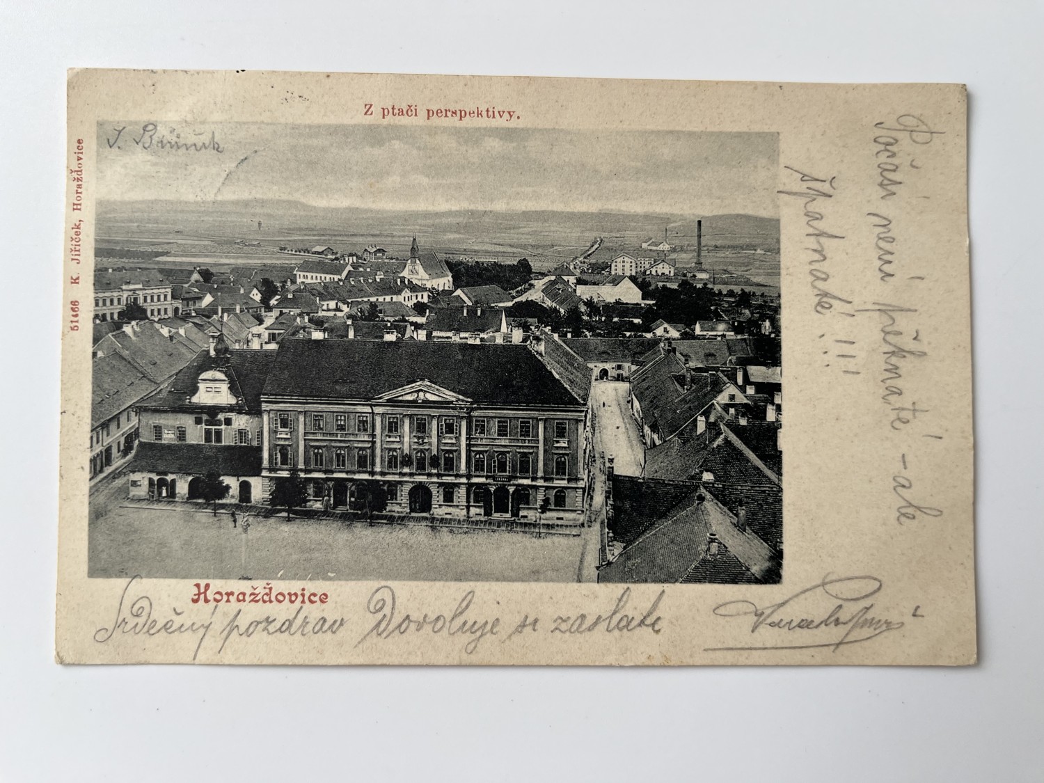 (Klatovy-2) Pohlednice malý formát, prošlá poštou. Z ptačí perspektivy.