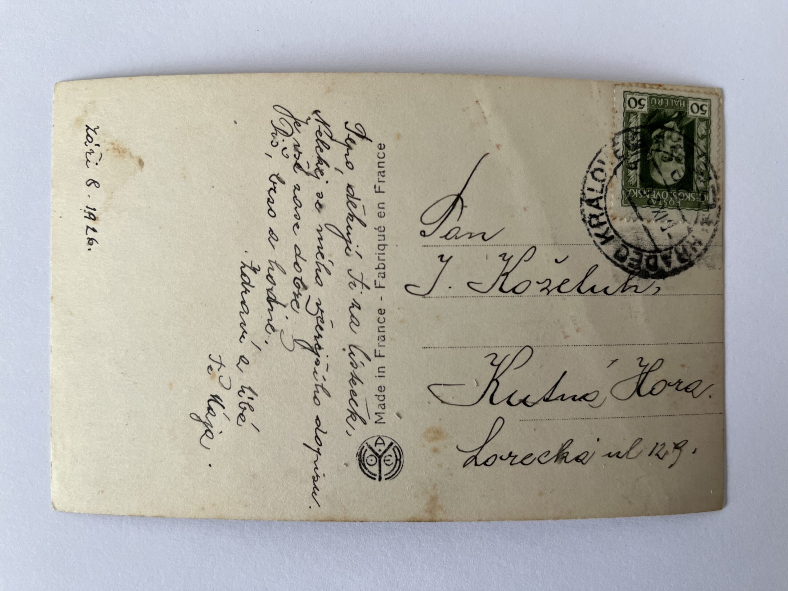 (Hradec Králové-68) Pohlednice malý formát, prošlá poštou, 1926. Adresát: Kutná Hora.