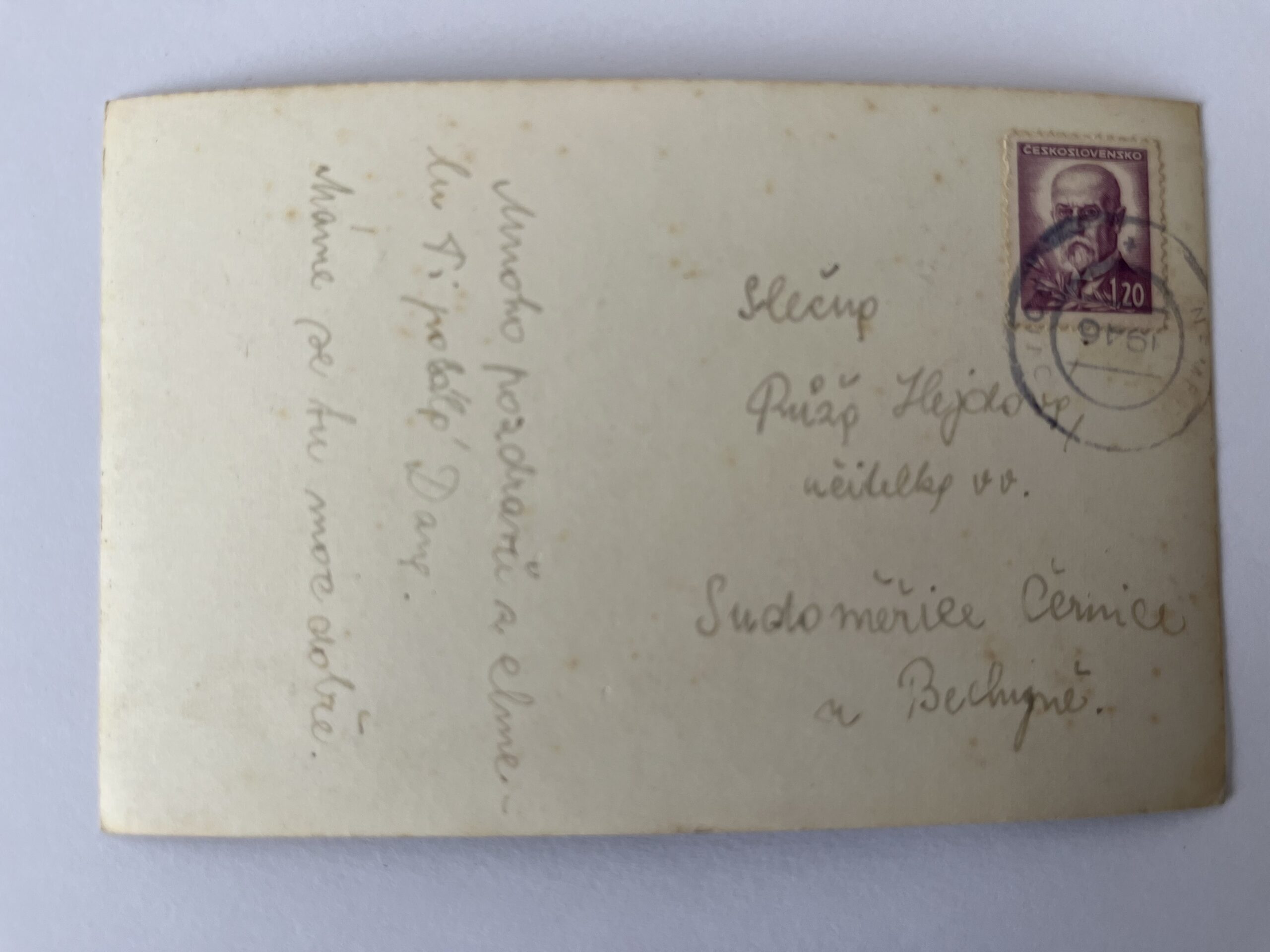 (Rakovník-7) Pohlednice malý formát, prošlá poštou. Adresát: učitelka, Sudoměřice Černice u Bechyně, okres Tábor