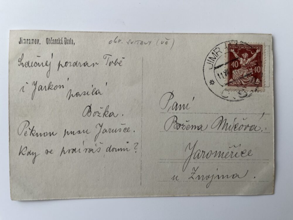 (Žďár nad Sázavou-21) Pohlednice malý formát, prošlá poštou. Občanská škola.