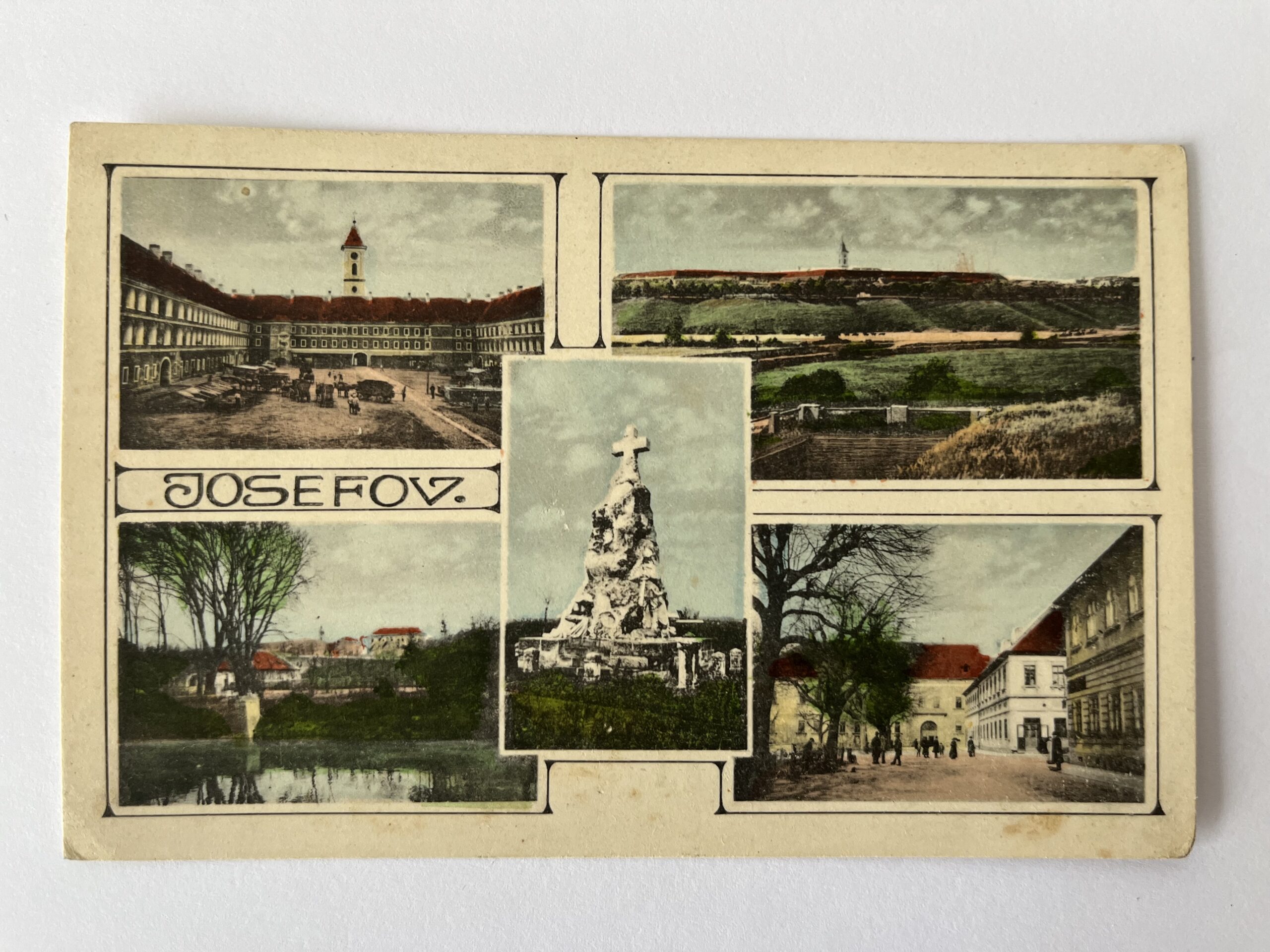 (Nácho-44) Pohlednice malý formát, neprošlá poštou. JOSEFOV – vojsko, kasárna, náměstí, pomník…Koláž.