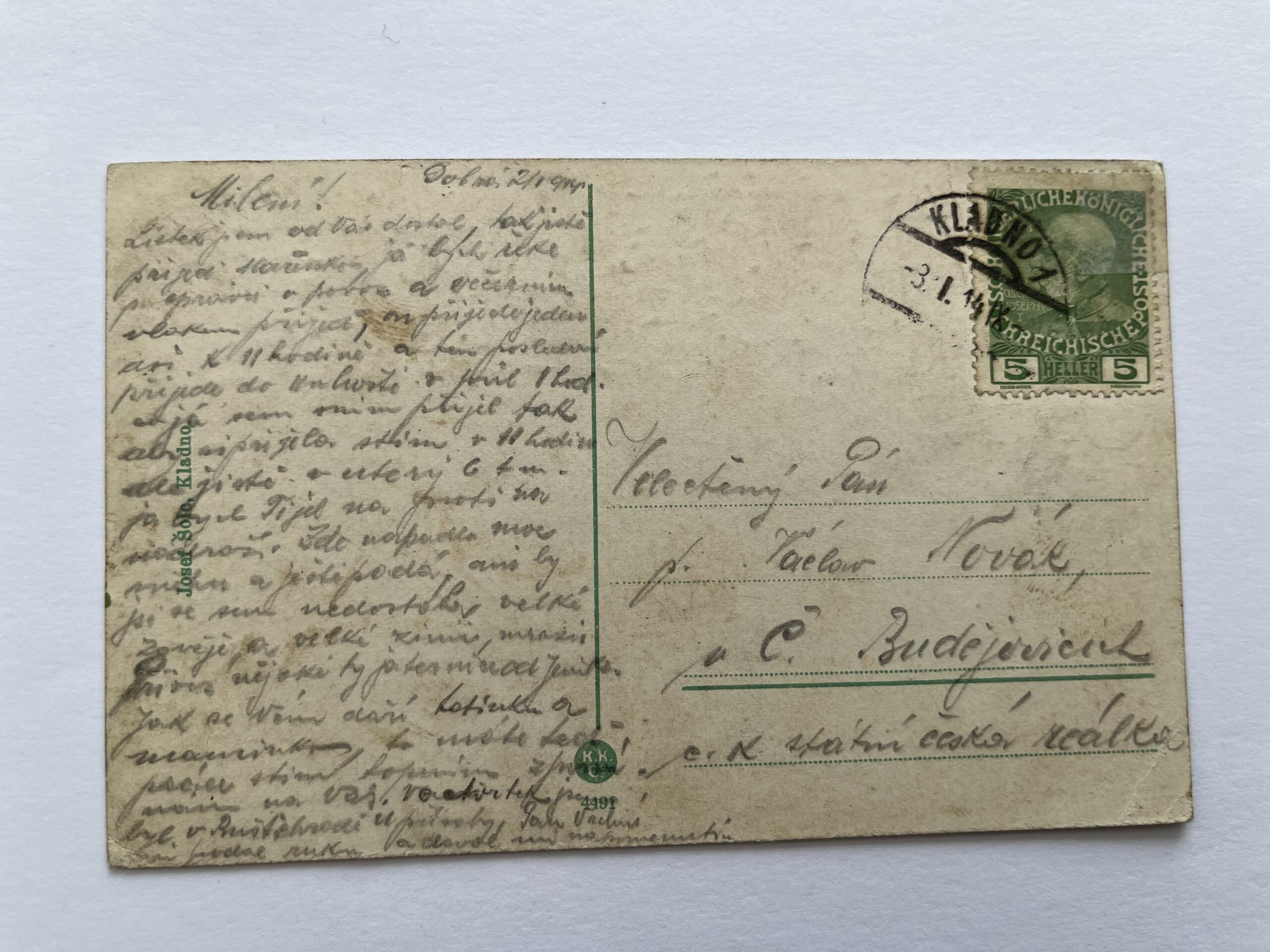 (Kladno 28) Pohlednice malý formát, prošlá poštou, 1914.
