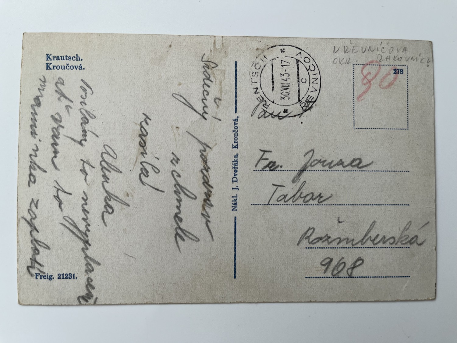 (Rakovník-7) Pohlednice malý formát, prošlá poštou.