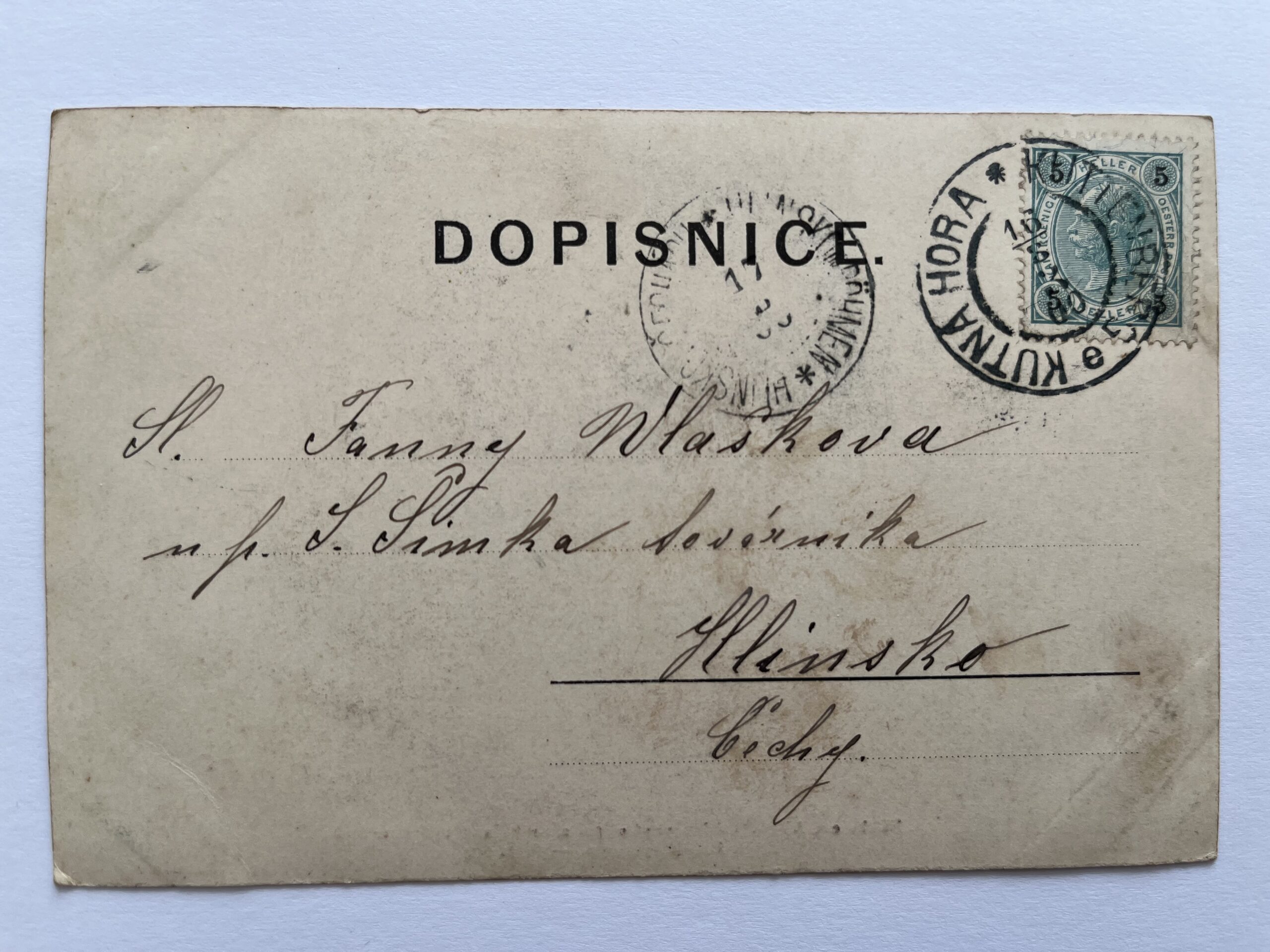 (Kutná Hora-19) Pohlednice malý formát, prošlá poštou,1900.