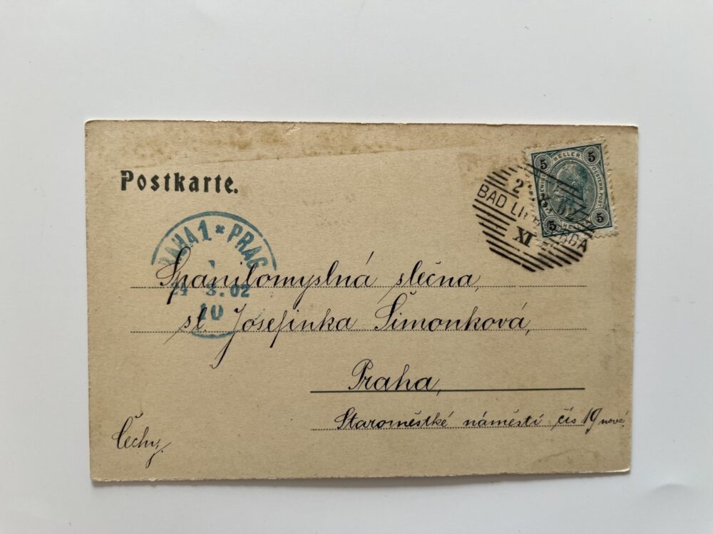 (Liberec-62) Pohlednice malý formát, prošlá poštou. Libverda – Lázně. Vila Anna. Promenáda. Koláž.