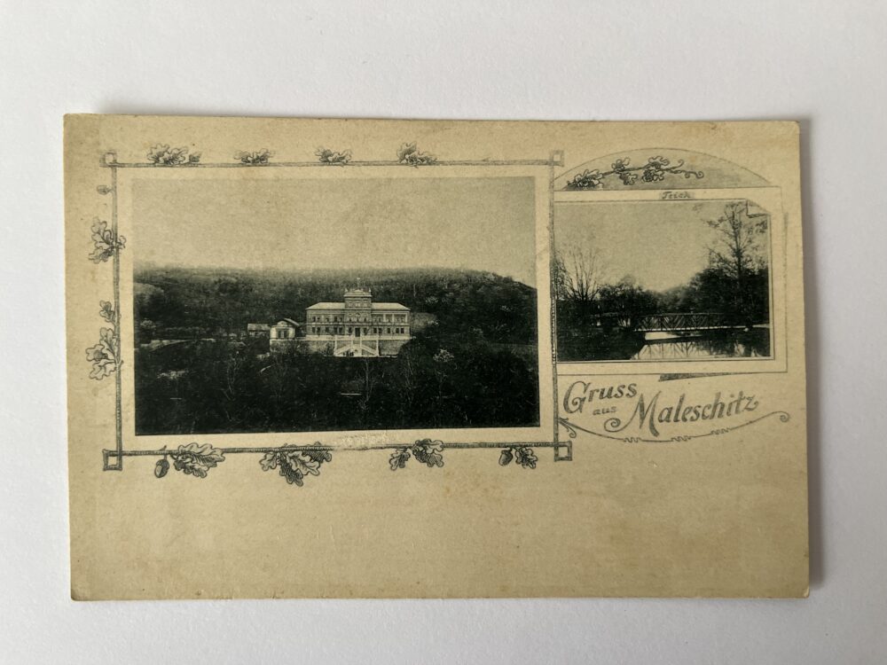 (České Budějovice-9) Pohlednice malý formát, neprošlá poštou. Malešice (německy Maleschitz). Zámek. Koláž.