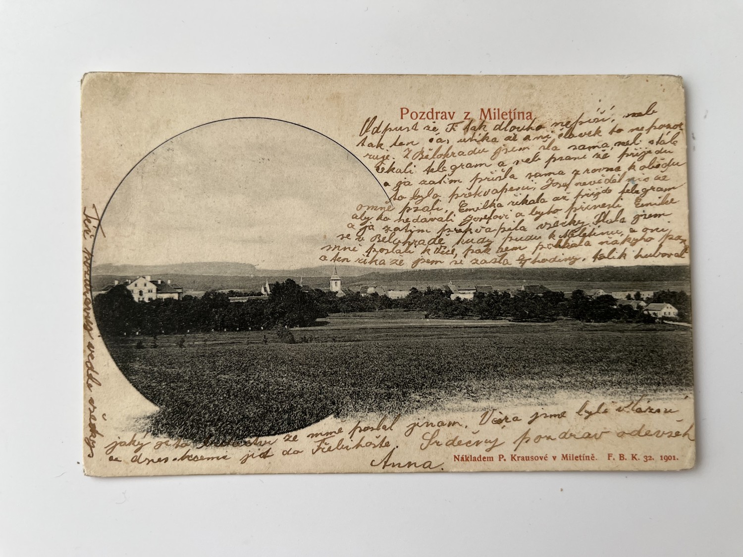 Pohlednice místopis Miletín - celkový pohled, okres Jičín r.1902 - Obrázek 2