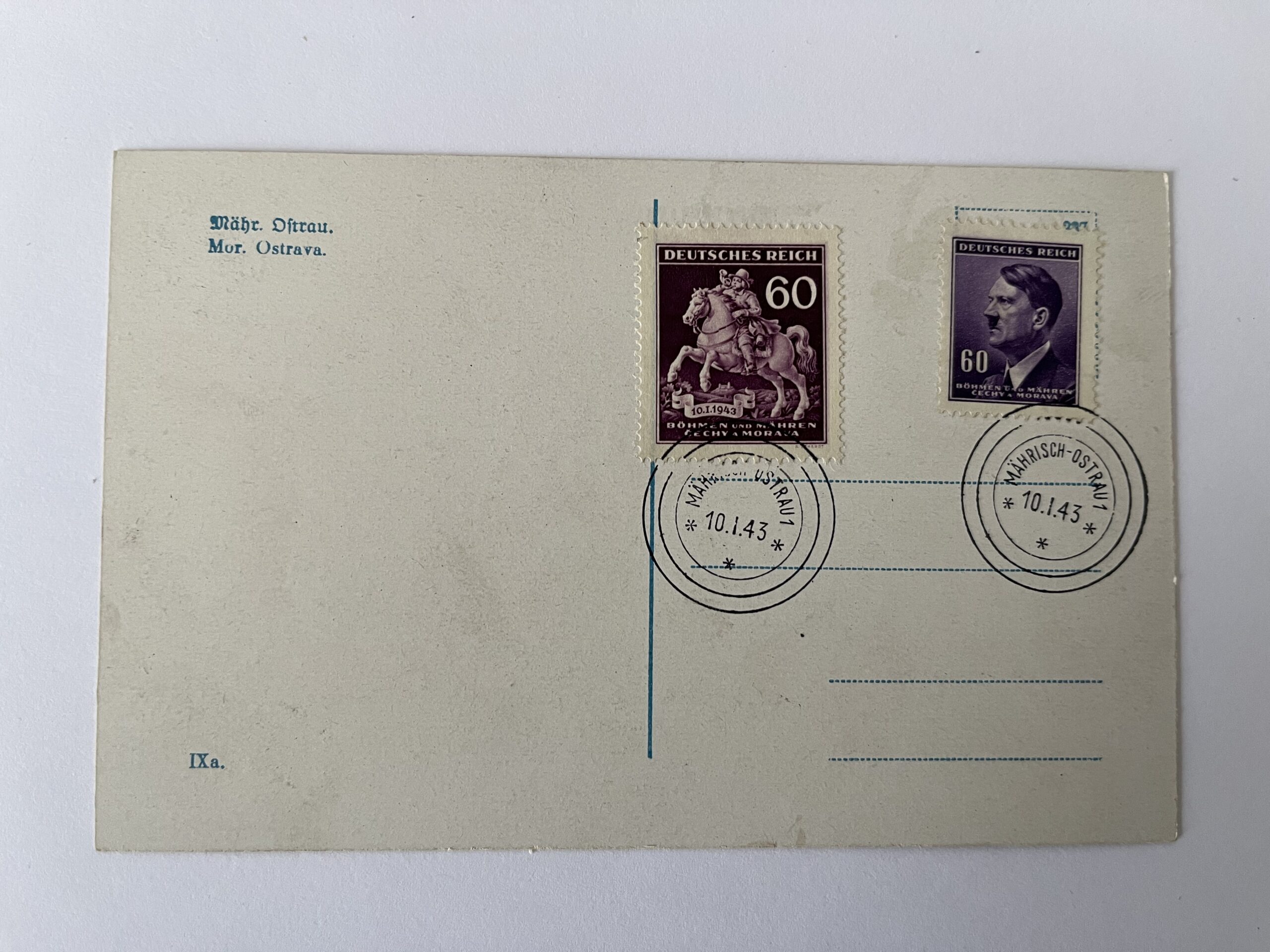 (Ostrava-město-42) Pohlednice malý formát, neprošlá poštou. Známky, razítka r.1943
