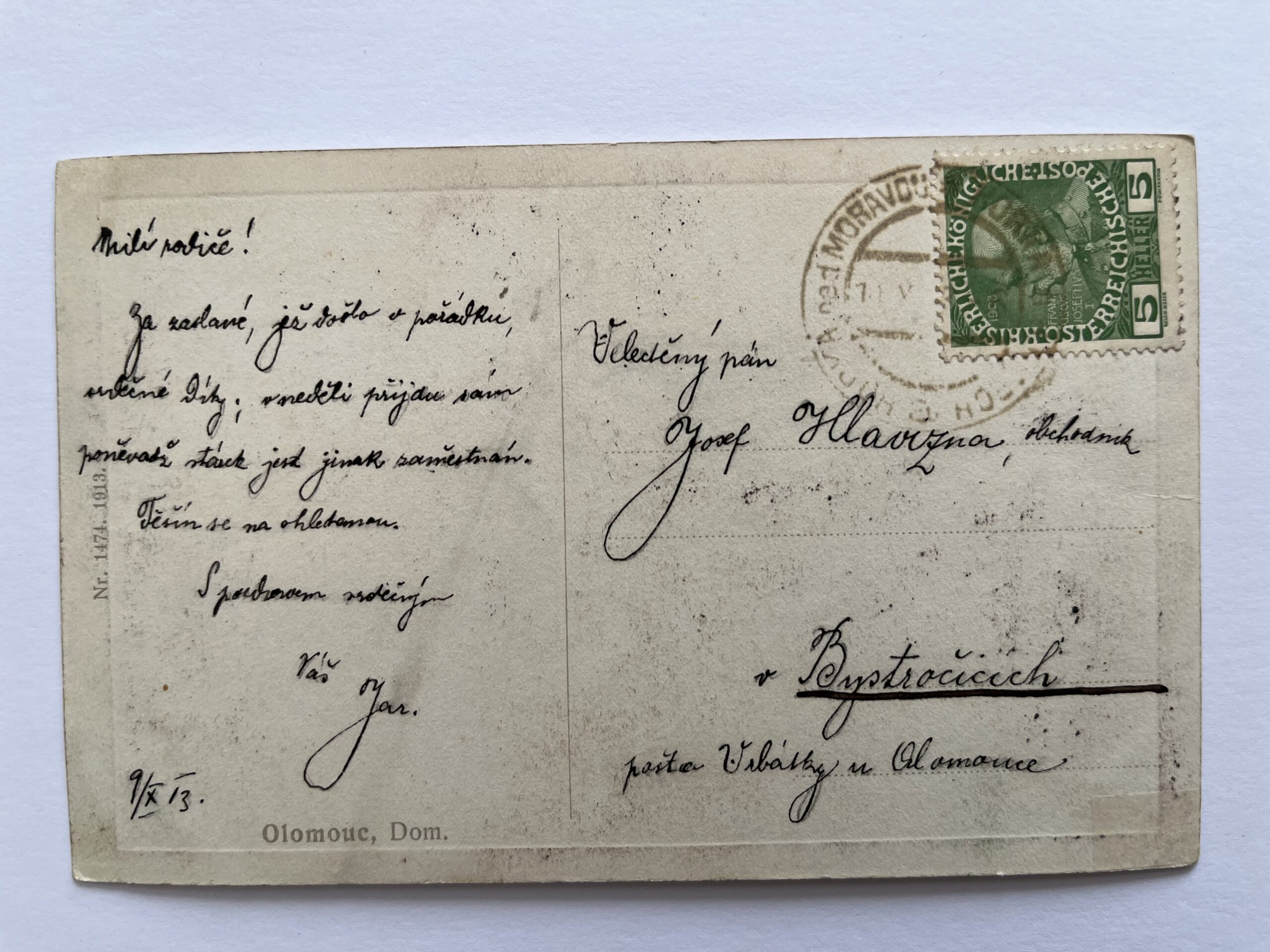 (Olomouc-30) Pohlednice malý formát, prošlá poštou, 1913.