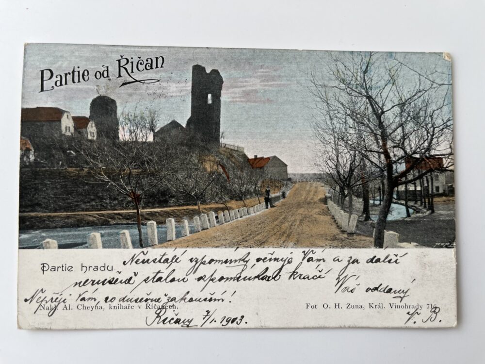 (Praha-východ-22) Pohlednice malý formát, prošlá poštou. Partie od Říčan. Partie hradu.