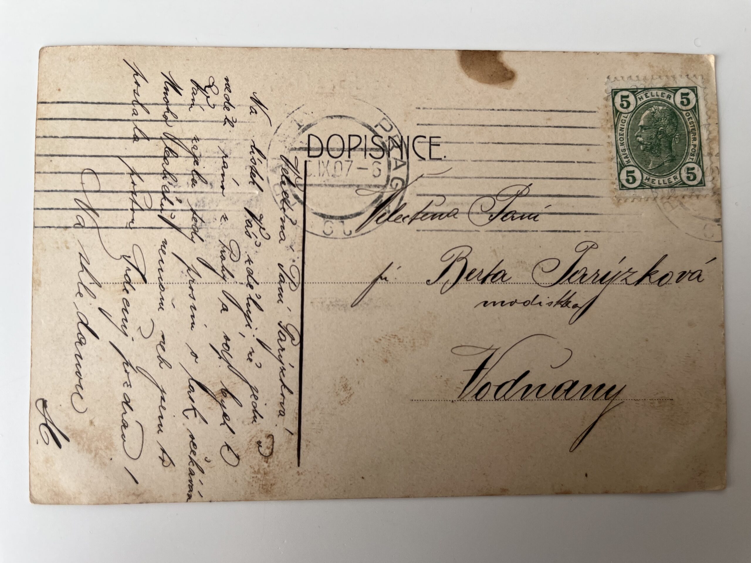 (Praha) Pohlednice malý formát, prošlá poštou, 1907.