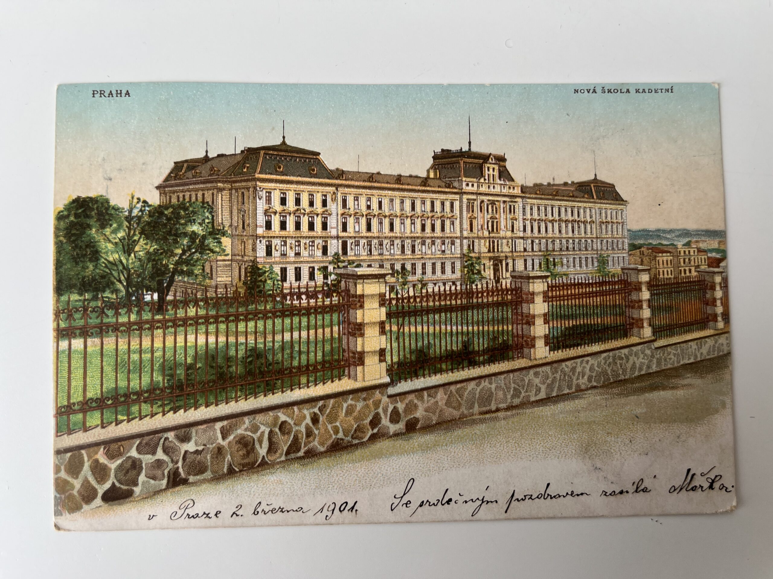 Pohlednice místopis Praha – Nová škola kadetní, r.1901