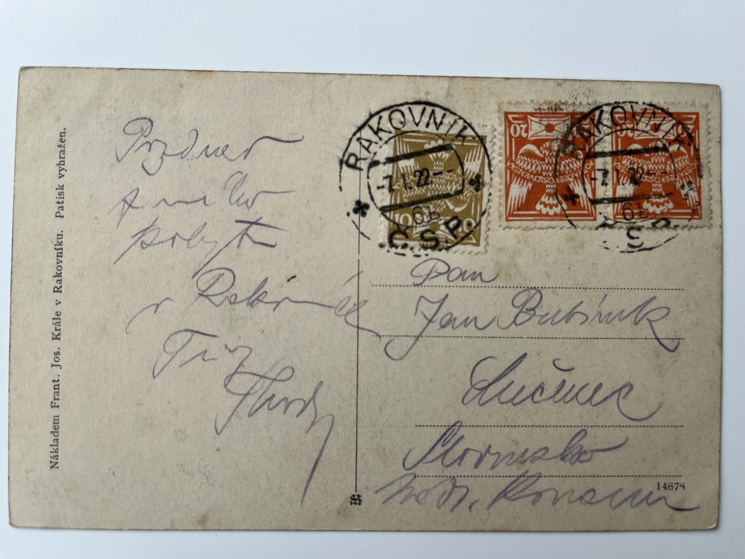 (Rakovník-7) Pohlednice malý formát, prošlá poštou. Rakovník – Náměstí. Hrad Křivoklát. Hrad Krakovec.