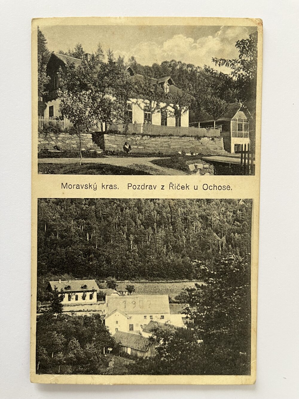 Pohlednice místopis Řičky u Ochoze, Moravský kras koláž 1924 - Obrázek 2