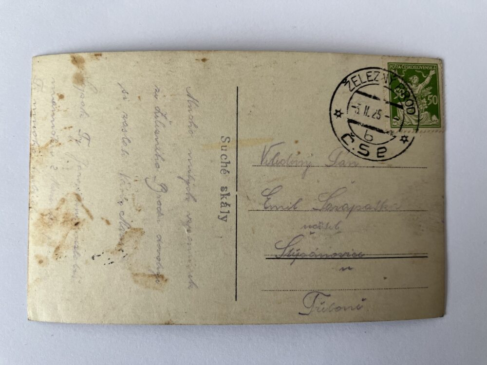 (Jablonec nad Nisou-38) Pohlednice malý formát, prošlá poštou, 1925. Adresát: učitel, Štěpánovice u Třeboně