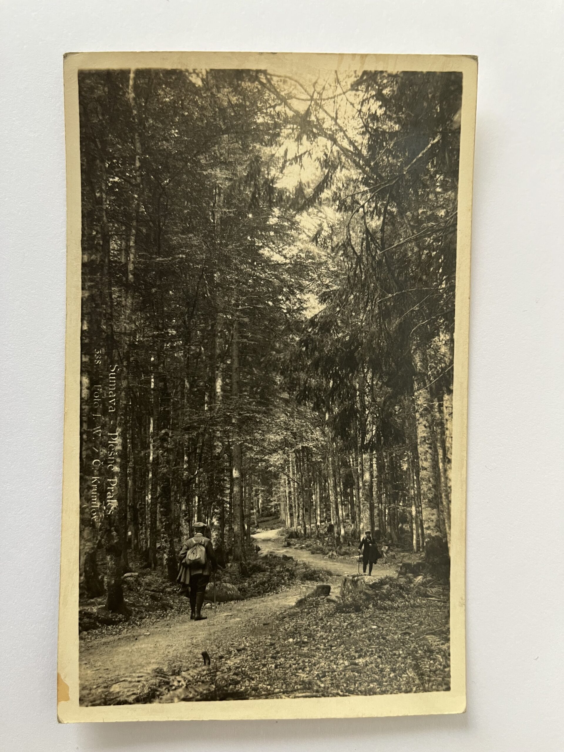 (Prachatice-33) Pohlednice malý formát, prošlá poštou, 1925. Razítko – Chata u Plešného jezera.