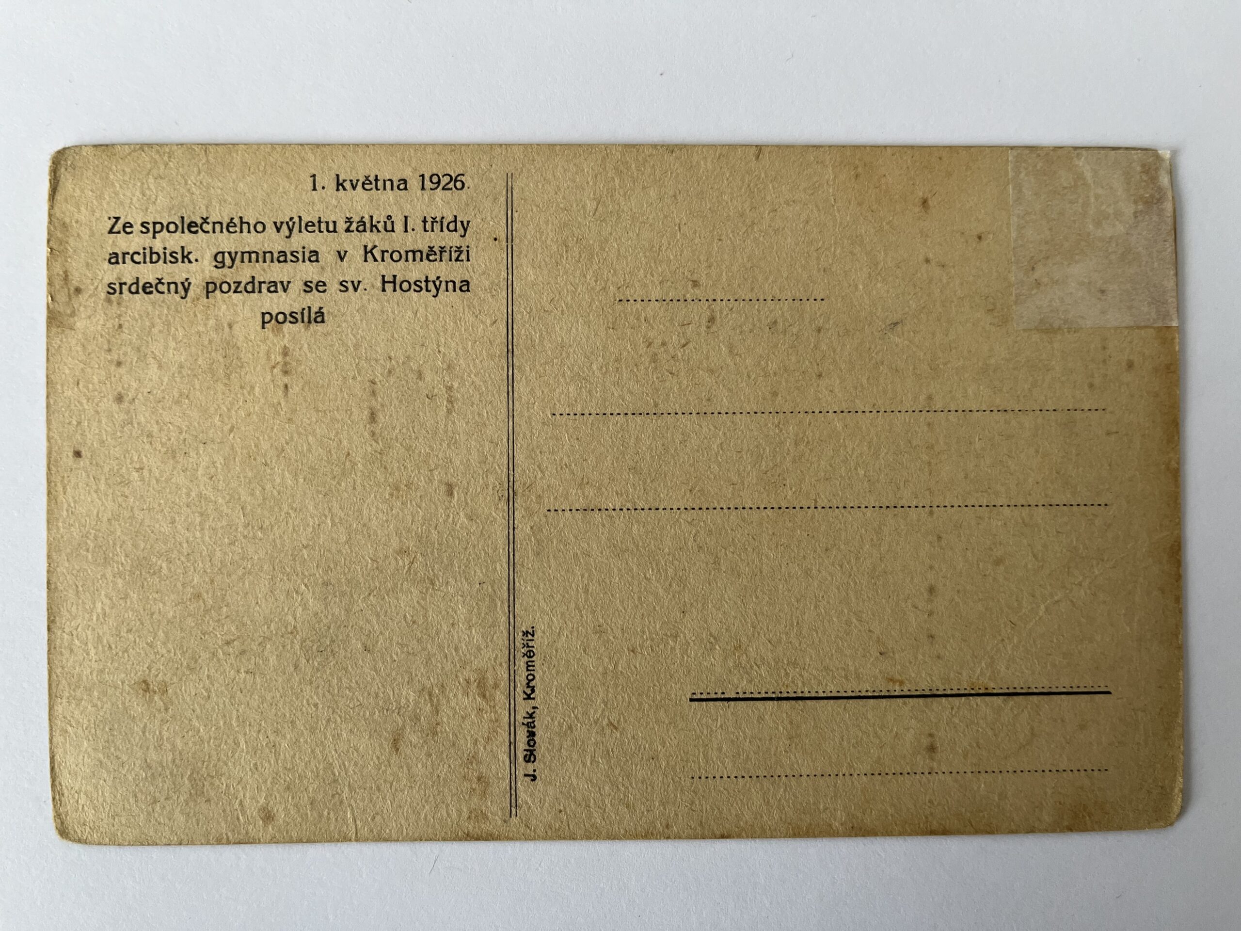 (Kroměříž-53) Pohlednice malý formát, neprošlá poštou. 1.května 1926 – Ze společného výletu žáků I. třídy arcibisk. gymnazia v Kroměříži.