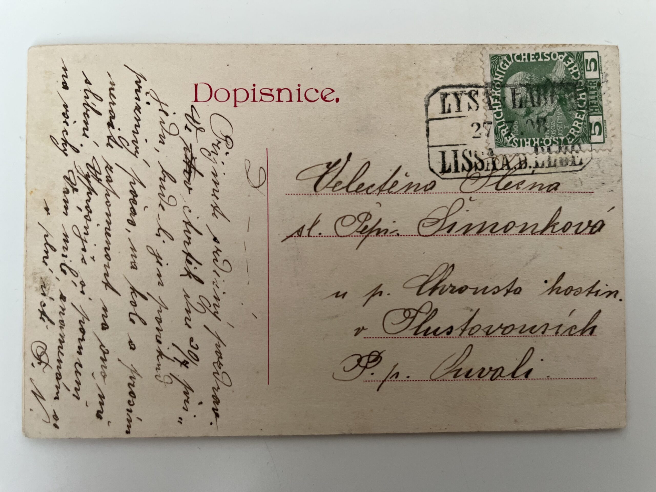 (Mladá Boleslav 36) Pohlednice malý formát, prošlá poštou, 1908. Adresát Tlustovousy.
