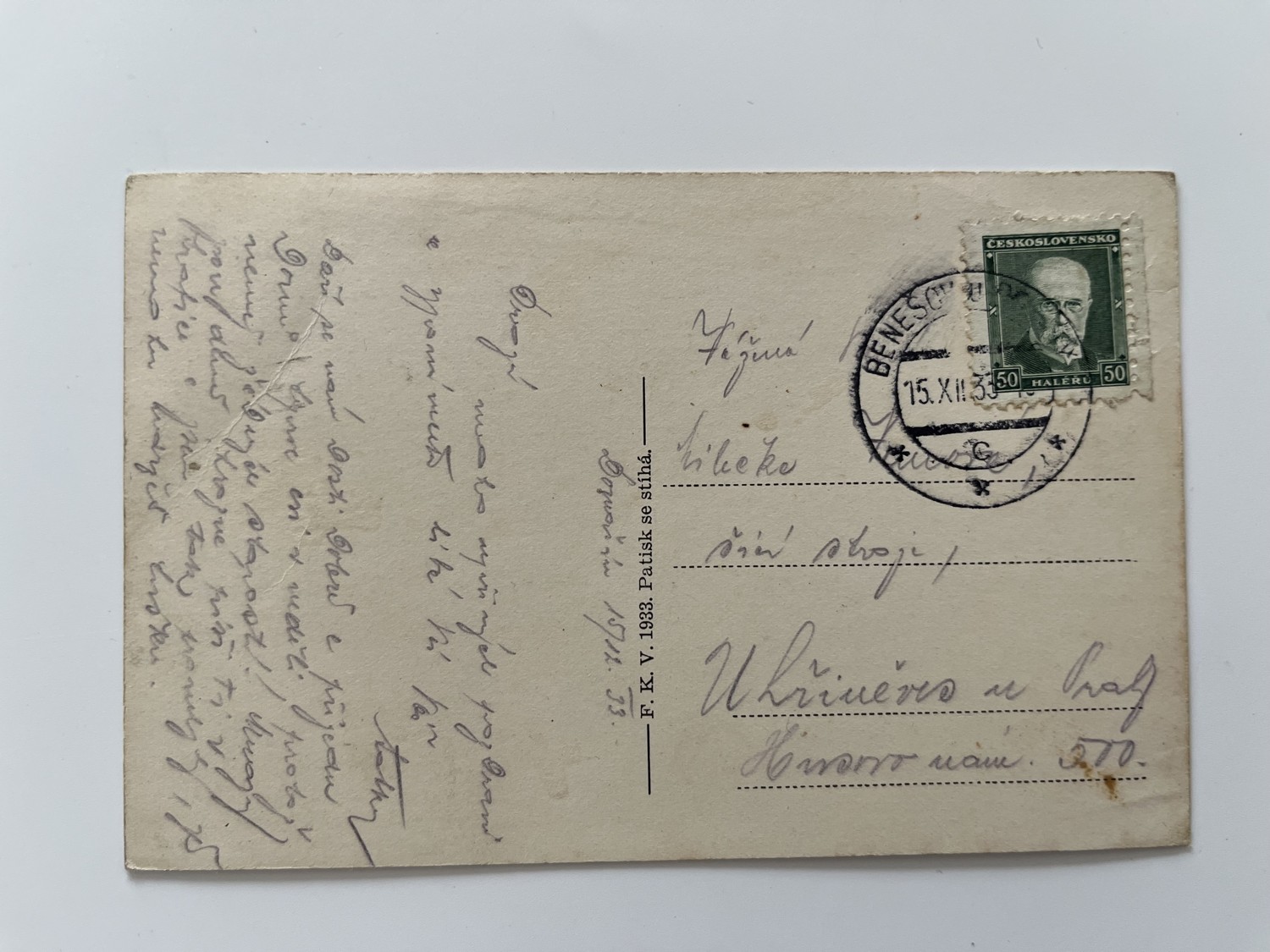 (Benešov-71) Pohlednice malý formát, prošlá poštou.
