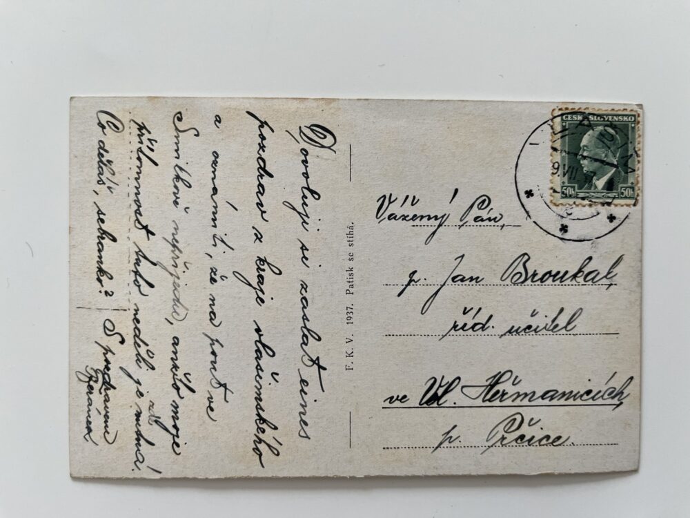 (Benešov-71) Pohlednice malý formát, prošlá poštou, r.1937.