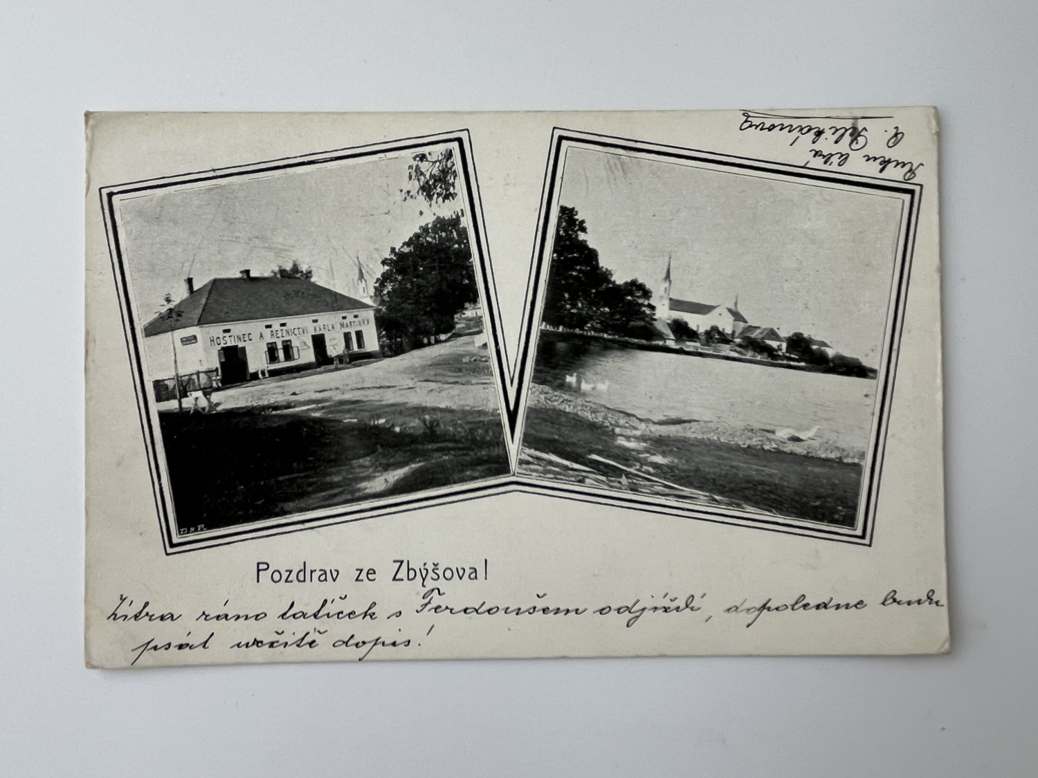 (Kutná Hora-19) Pohlednice malý formát, prošlá poštou. Zbýšov – Hostinec a řeznictví.