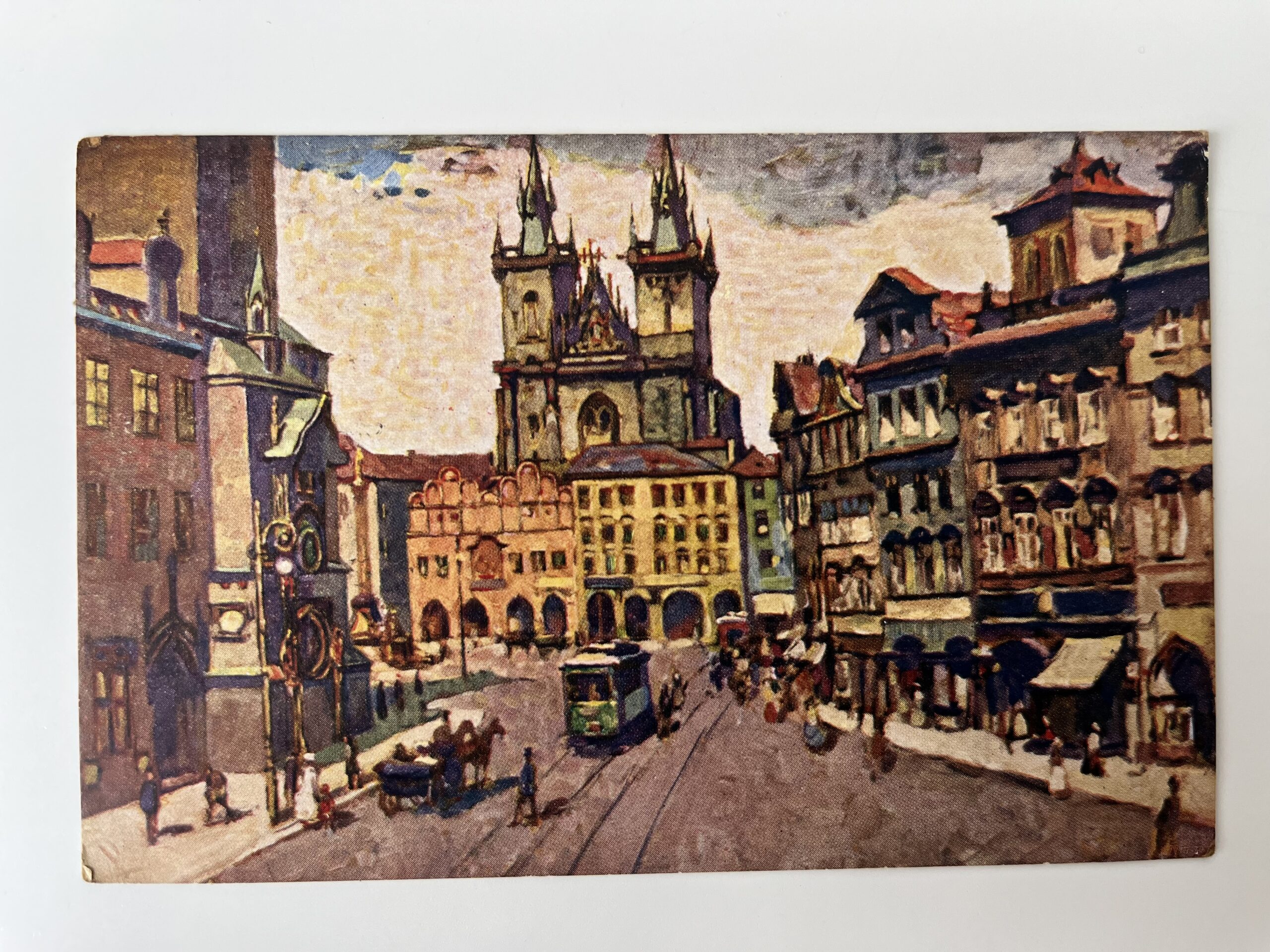 Pohlednice Praha - Staroměstské náměstí, Týnský chrám, tramvaj 1931 - Obrázek 2