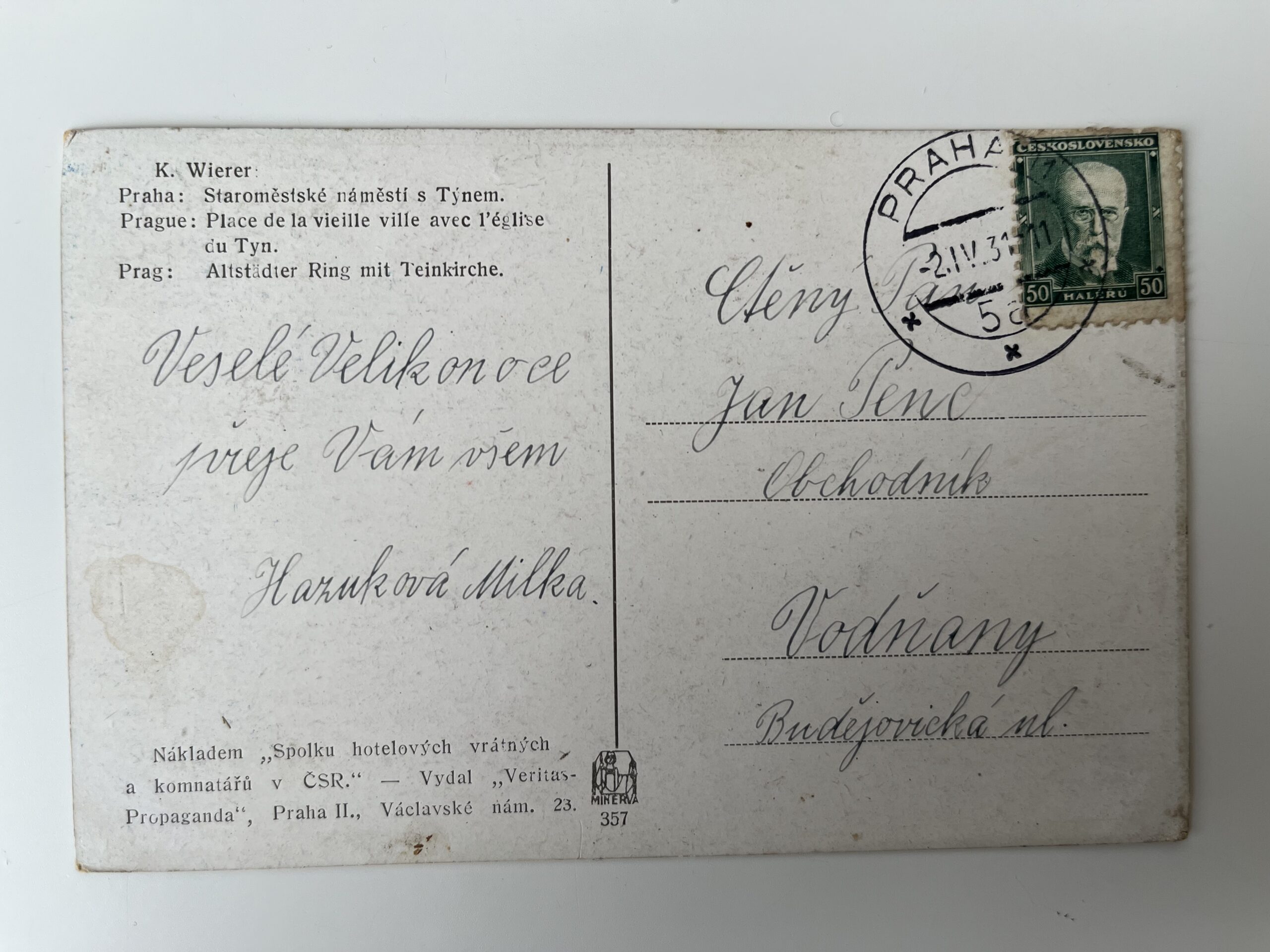 (Praha) Pohlednice malý formát, prošlá poštou, 1931.
