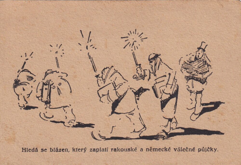 (hhk 54) MF, neprošlá poštou. Hledá se blázen, který zaplatí rakouské a německé válečné půjčky.