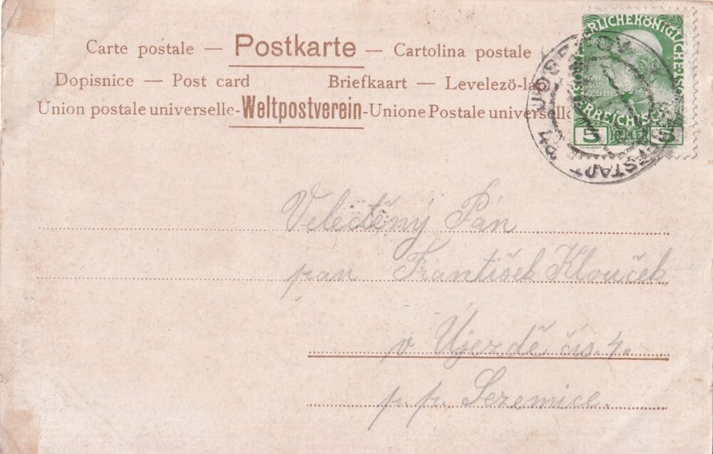 37 (hhf) Rozměr 14 x 9 cm. Adresováno Újezd, p. Sezemice. Razítko Josefov