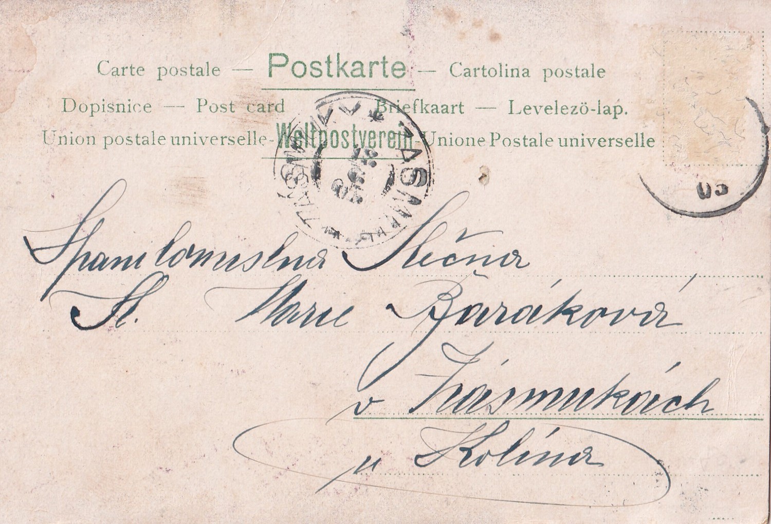 57 (hhf) Rozměr 14 x 9 cm. Adresováno v Zásmukách u Kolína.