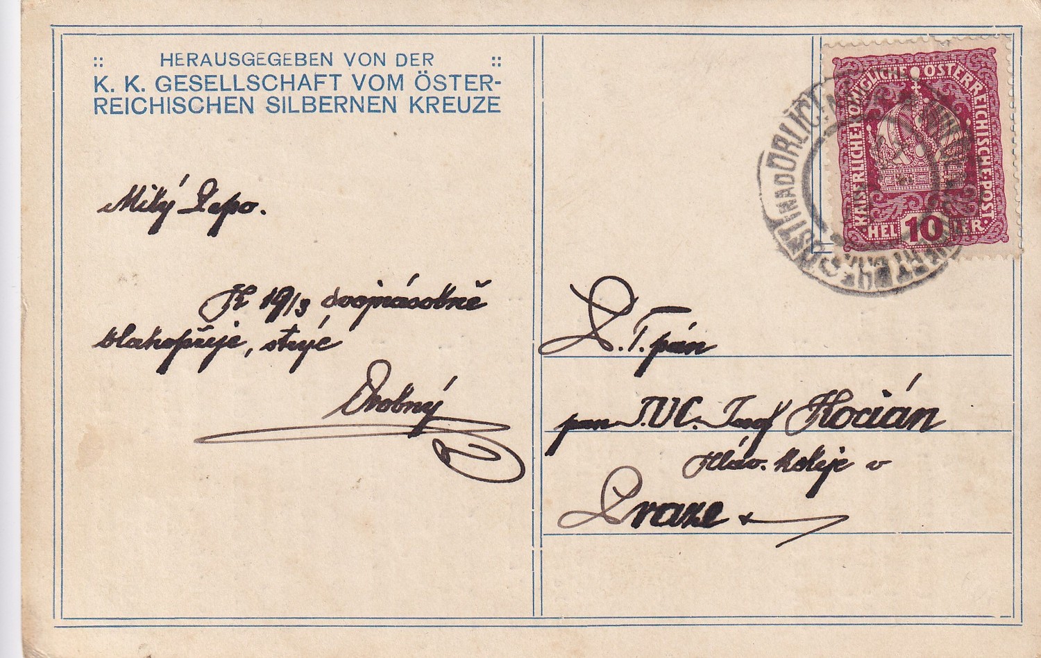 (hhk 88) MF pohlednice prošlá poštou. Vydalo nakladatelství K.K. Společnost rakouských stříbrných křížů